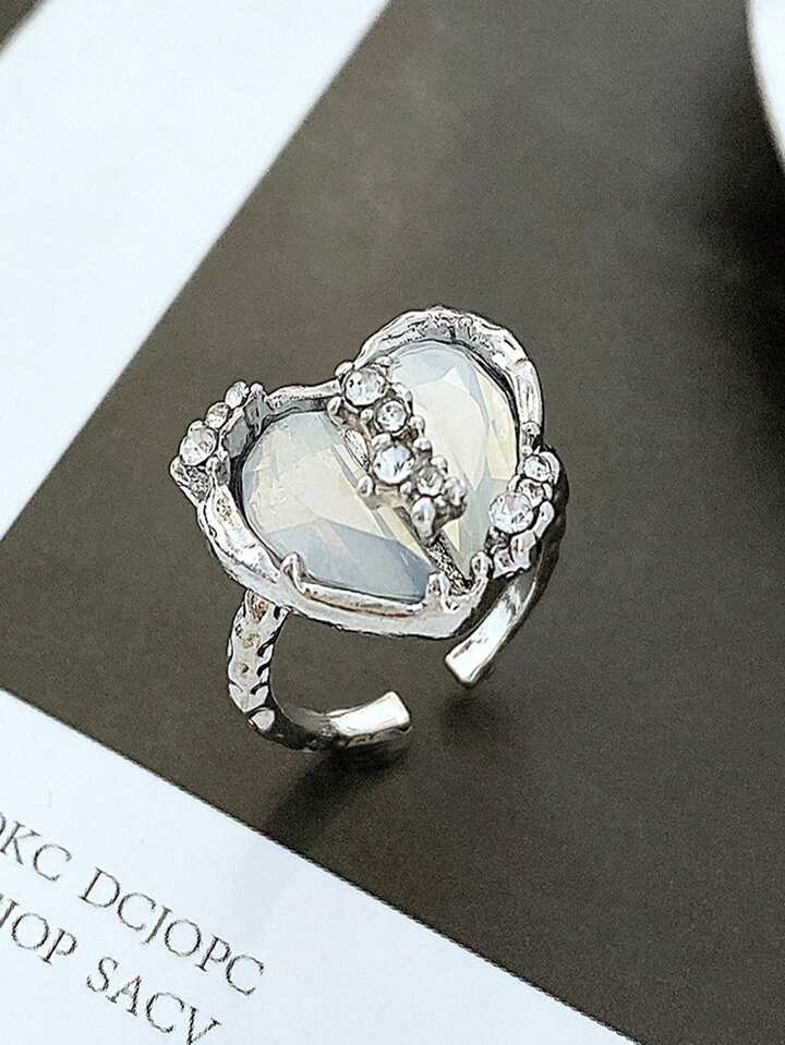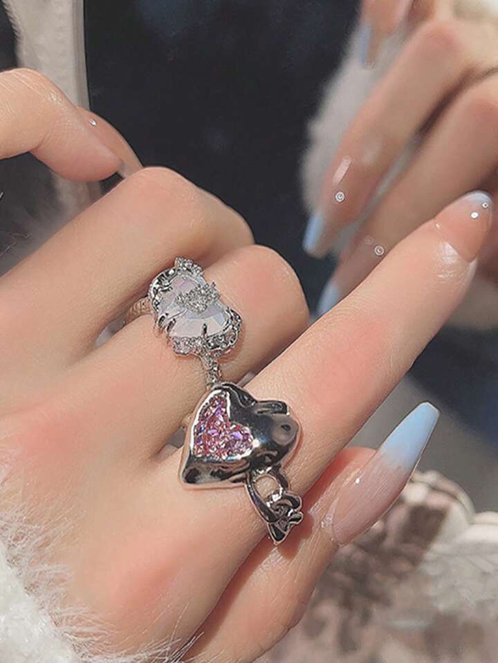 Fairycore Conjunto De 2 Anillos Ajustables Al Estilo Minimalista De Lujo Con Forma De Corazón Y Piedra Lunar