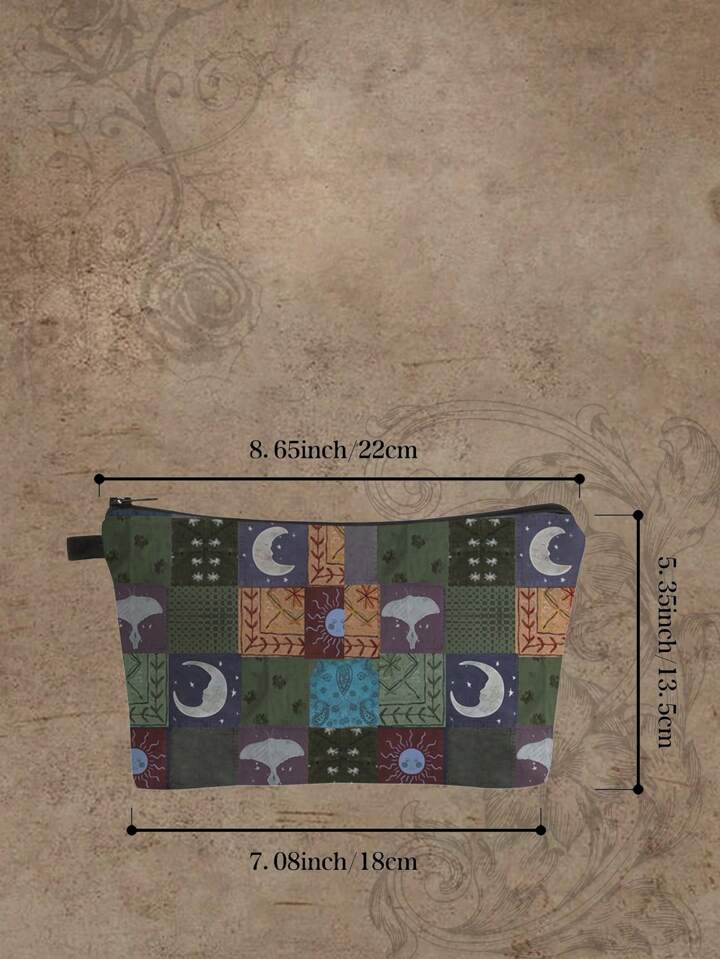 Fairycore 1 pieza Neceser de maquillaje con cremallera y estampado de luna y sol