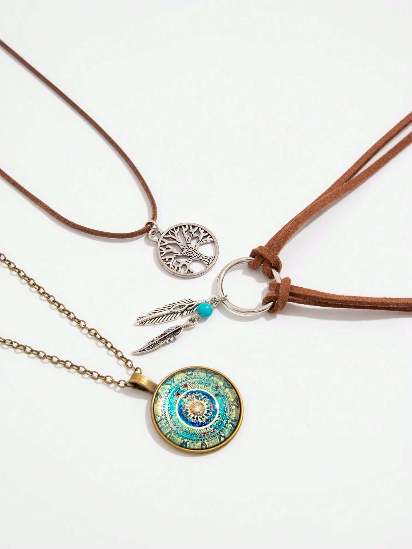 Fairycore Conjunto de 3 piezas de collar con colgante de cristal con gema con estilo retro vintage