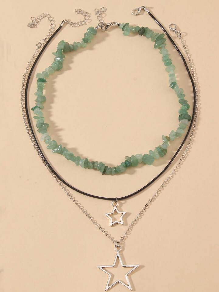 Fairycore 3 Piezas/set Collar Bohemio Vintage Con Cuentas Y Collar Colgante De Estrella