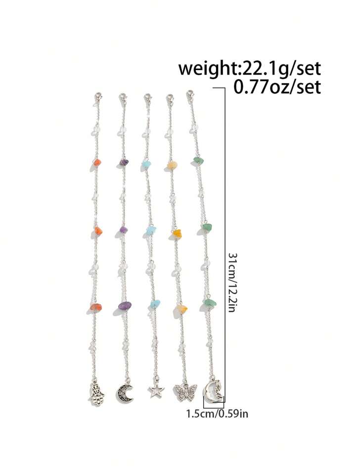 Fairycore Set de 5 piezas de accesorios para el cabello con cadena de con cuentas con formas de estrella, luna y mariposa, joyería minimalista de moda para la cabeza