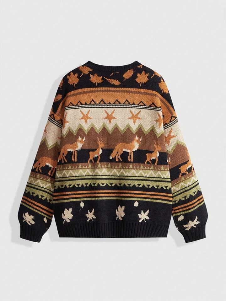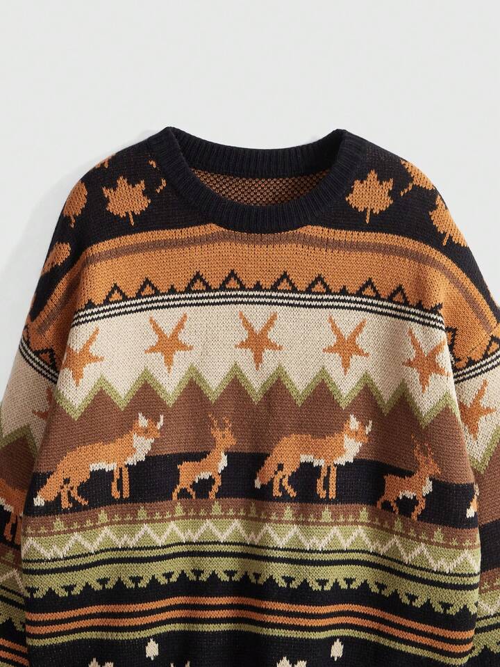 Fairycore Suéter de cuello redondo casual versátil de manga larga con estampado total