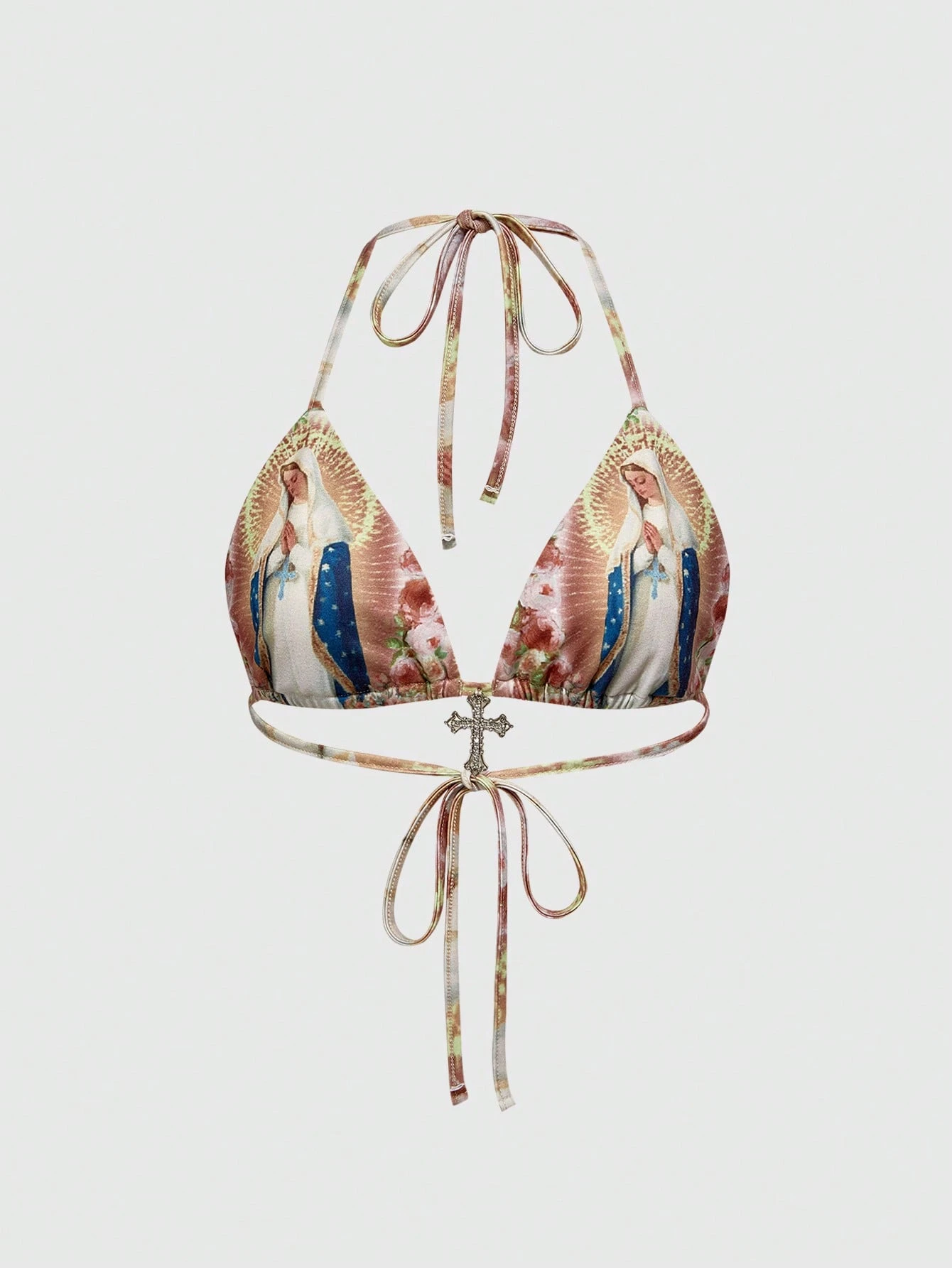 Fairycore Top corto con estampado de la Madre Santa del Ángel, de estilo sexy y de palacio, con escote de halter y espalda descubierta