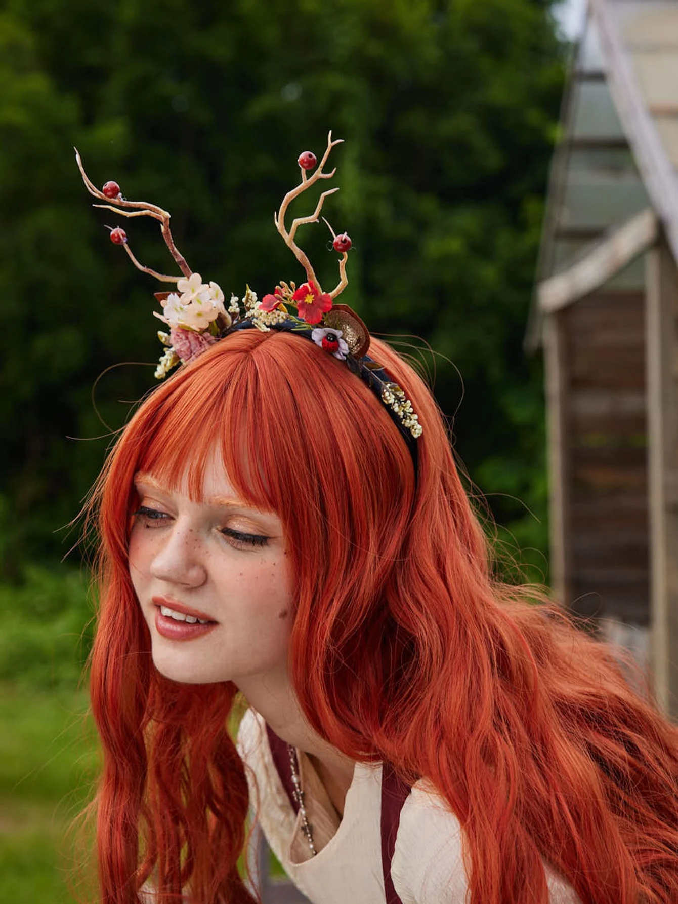 Fairycore Diadema con diseño de cornamenta & flor