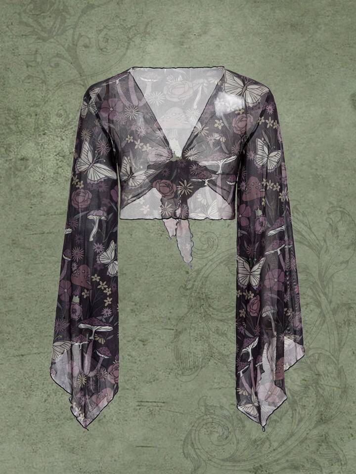 Fairycore Top con estampado de mariposa con cordón delantero de malla