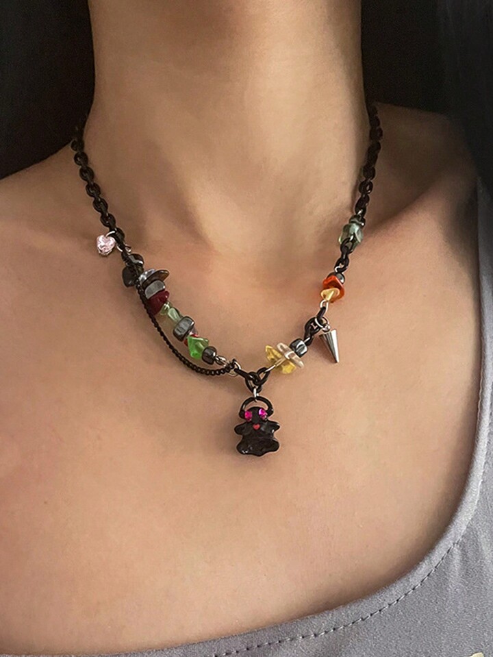 Fairycore Collar de cadena con dibujos animados con adorno de fantasma al azar piedra