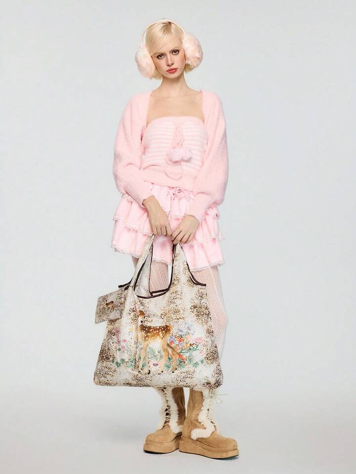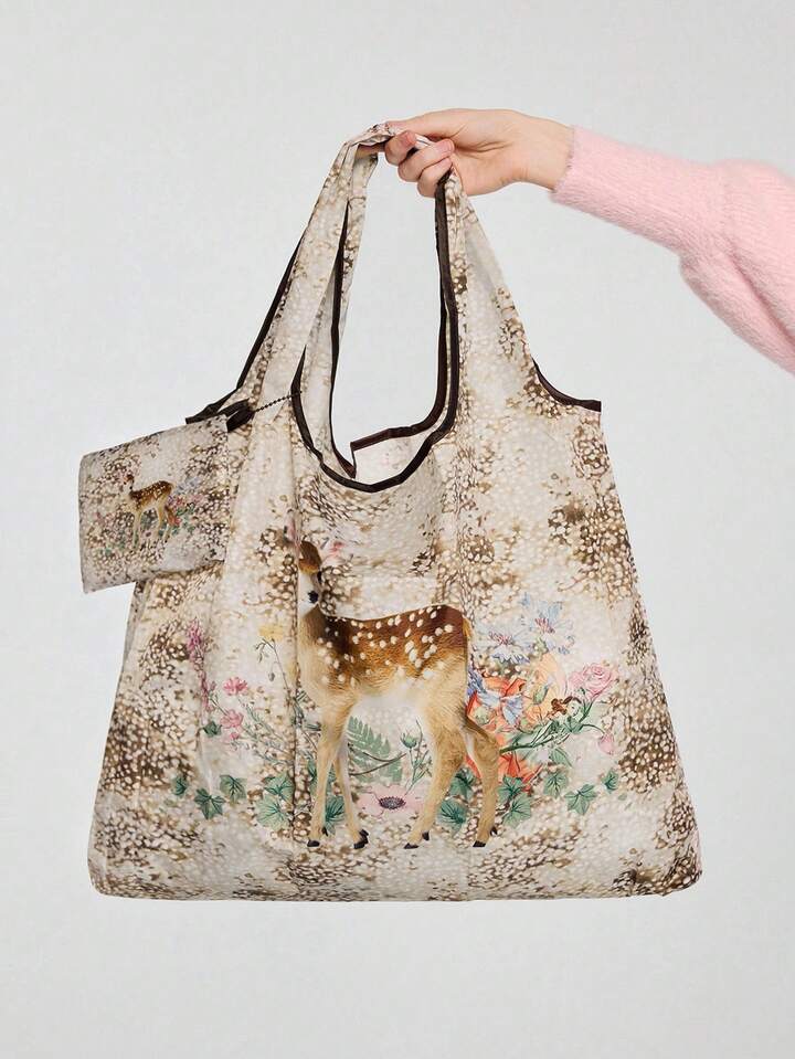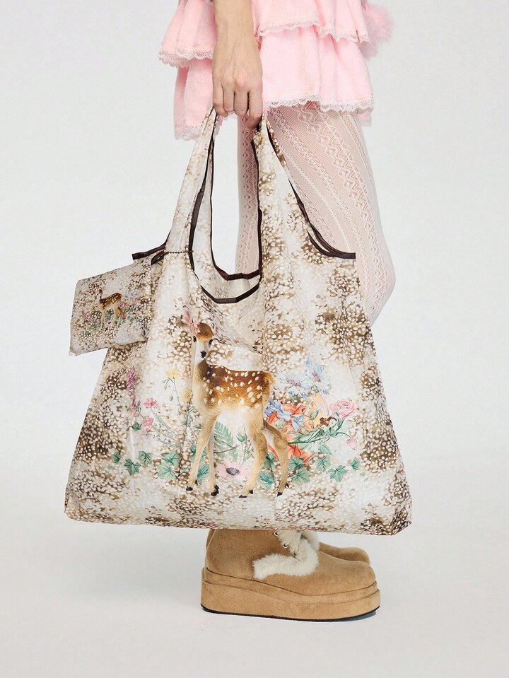 Fairycore Bolso de tela plegable de gran capacidad con estampado de dibujos animados y monedero
