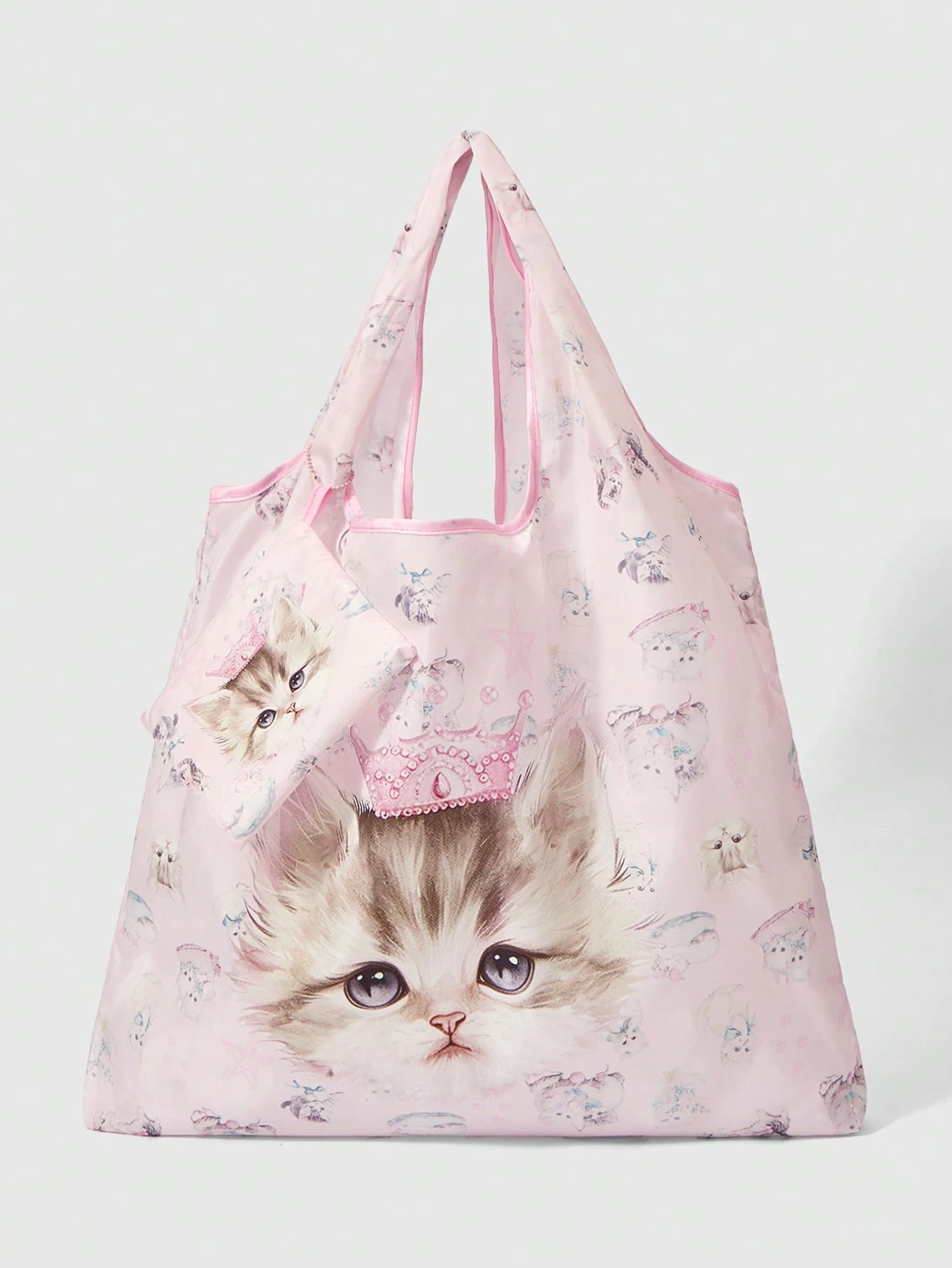 Fairycore Bolso de tela plegable de gran capacidad con estampado de dibujos animados y monedero