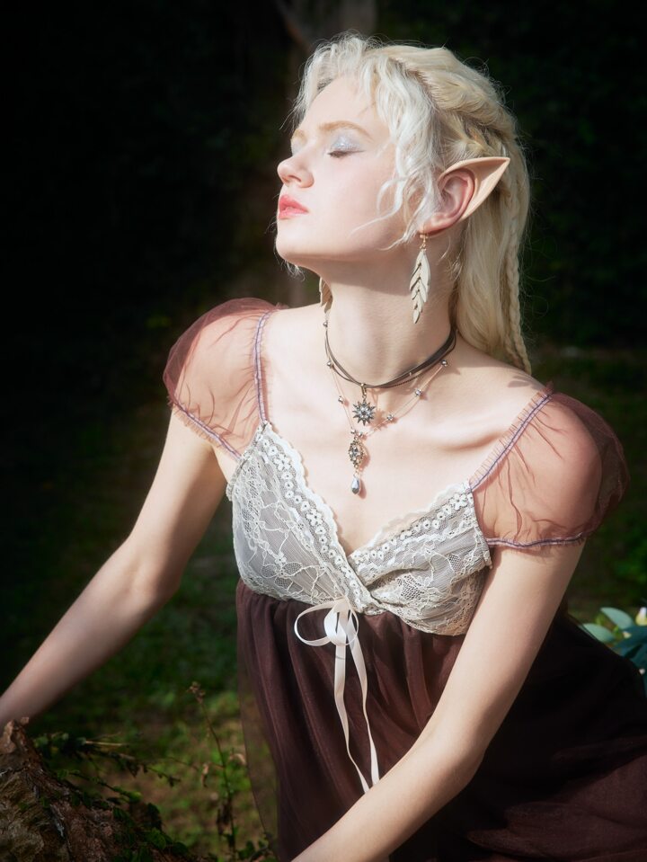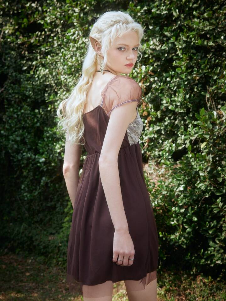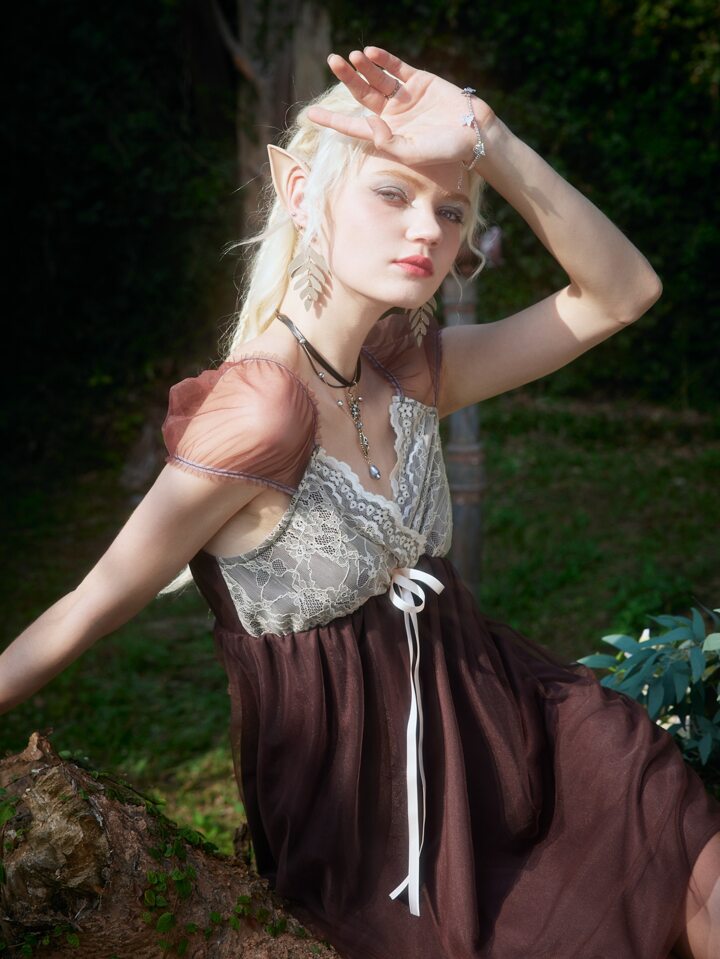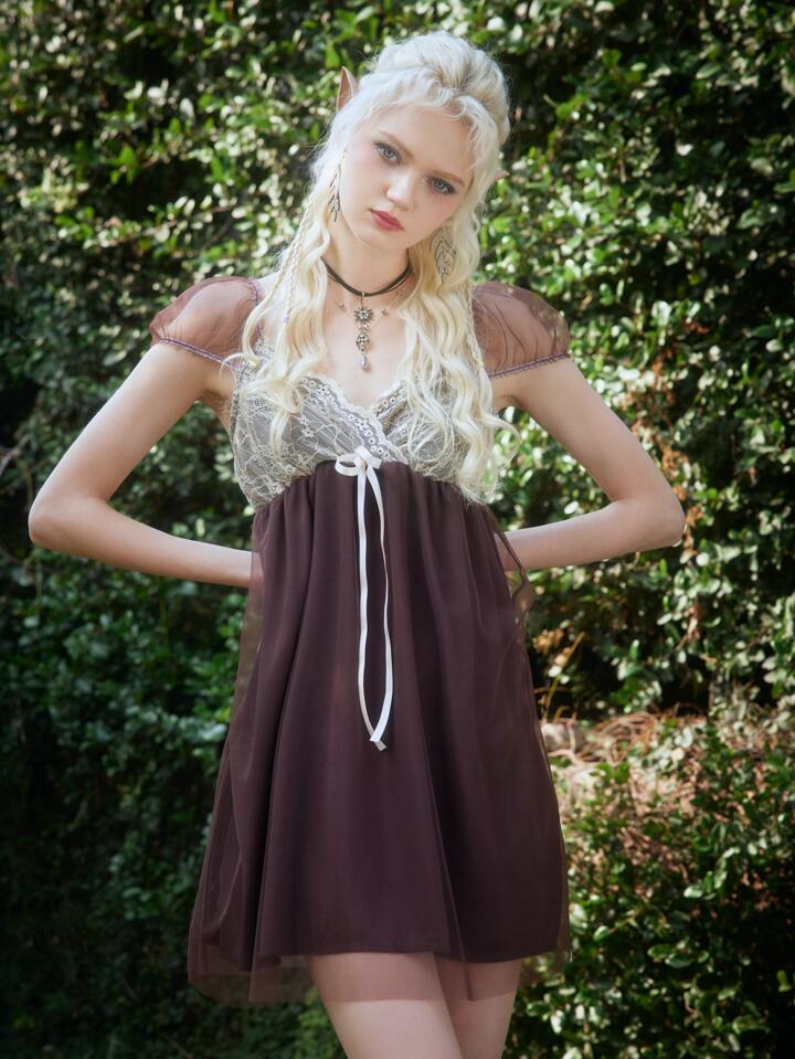 Fairycore Vestido con encaje en contraste de manga casquillo