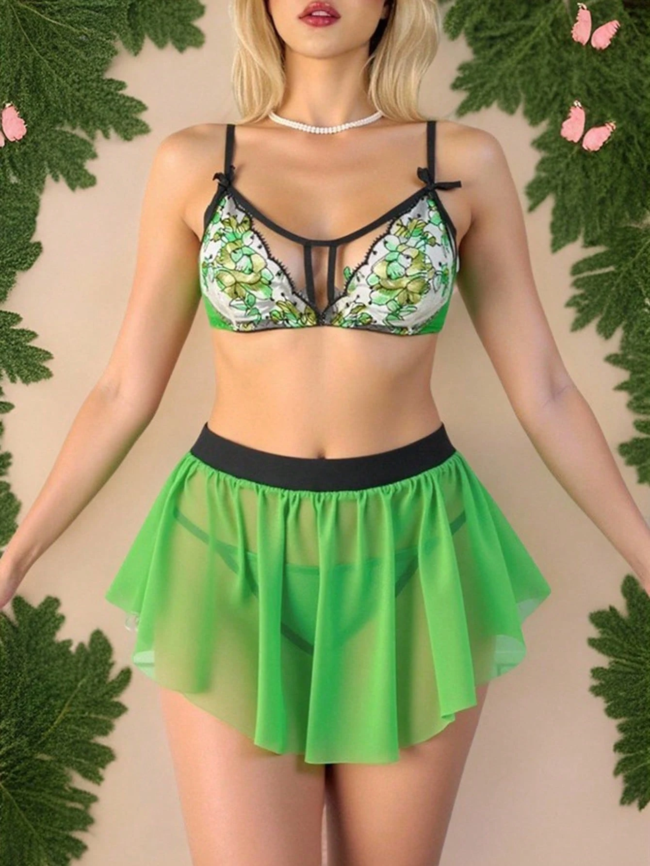Fairycore Elegante conjunto de lencería inalámbrico y sexy con bordado floral