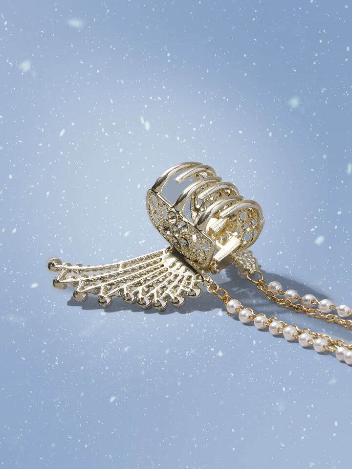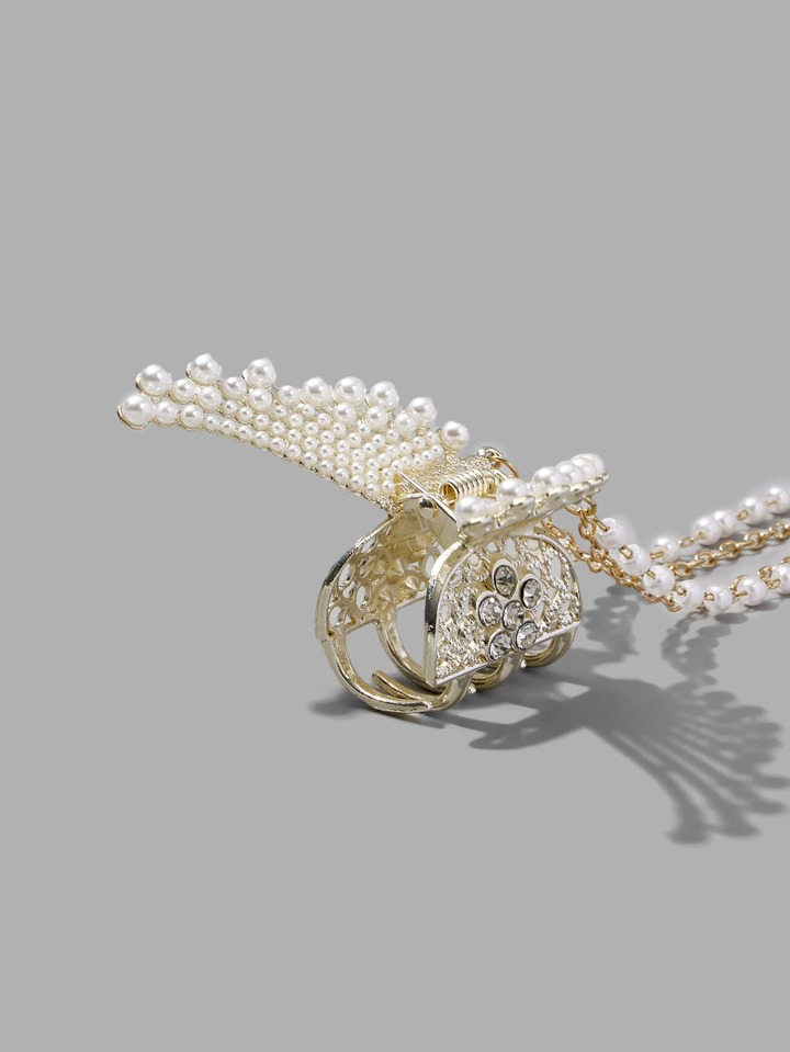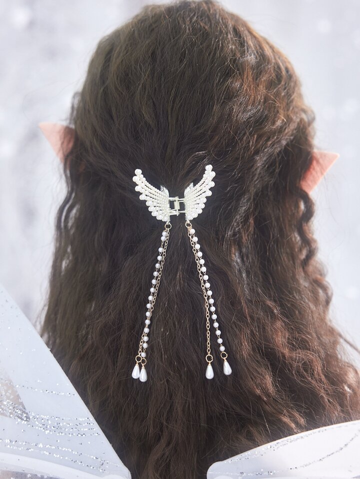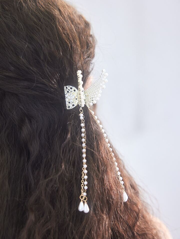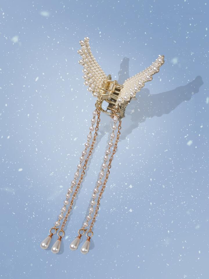 Fairycore Garra de pelo con diseño de perla artificial con diseño de mariposa