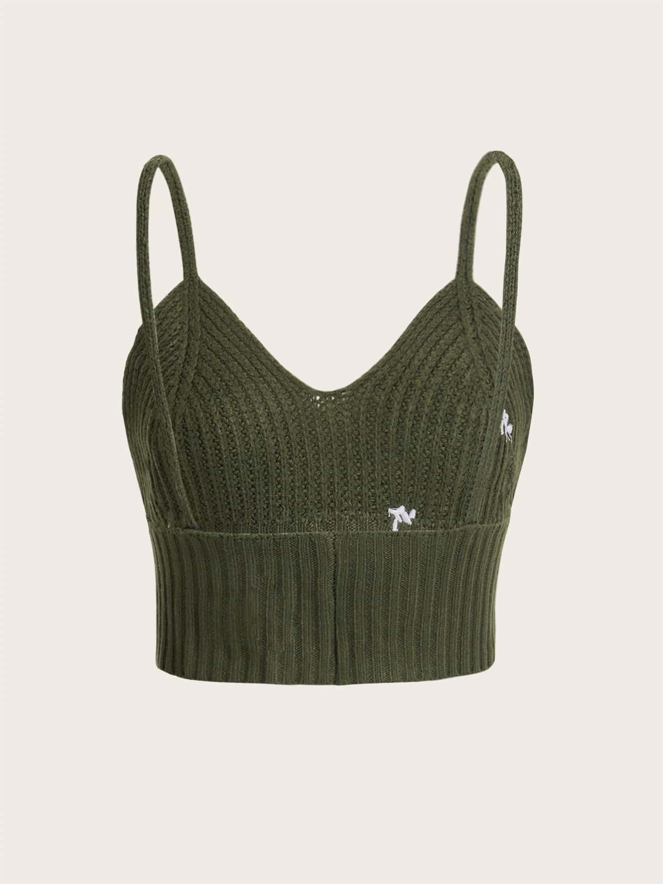 Fairycore Top tejido de tirantes con bordado floral