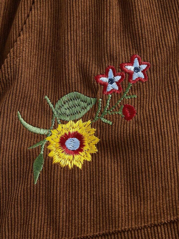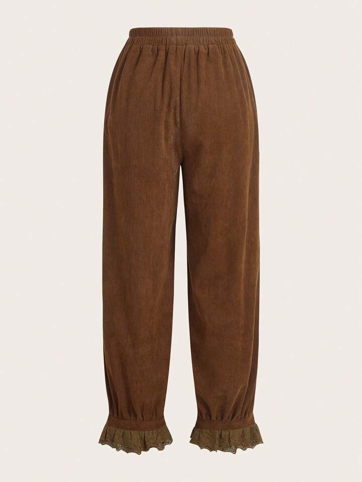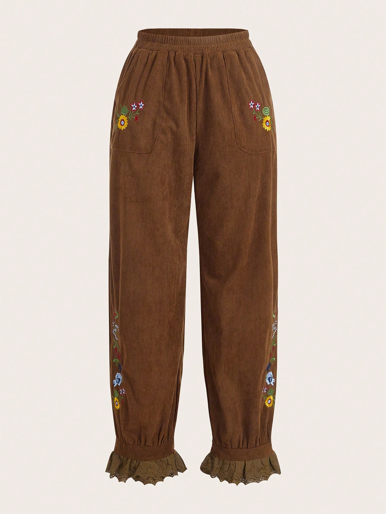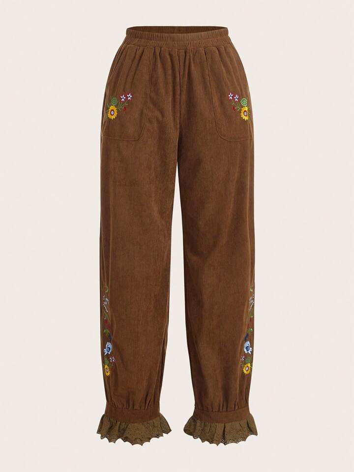 Fairycore Pantalones con dobladillo con volante y bordado floral