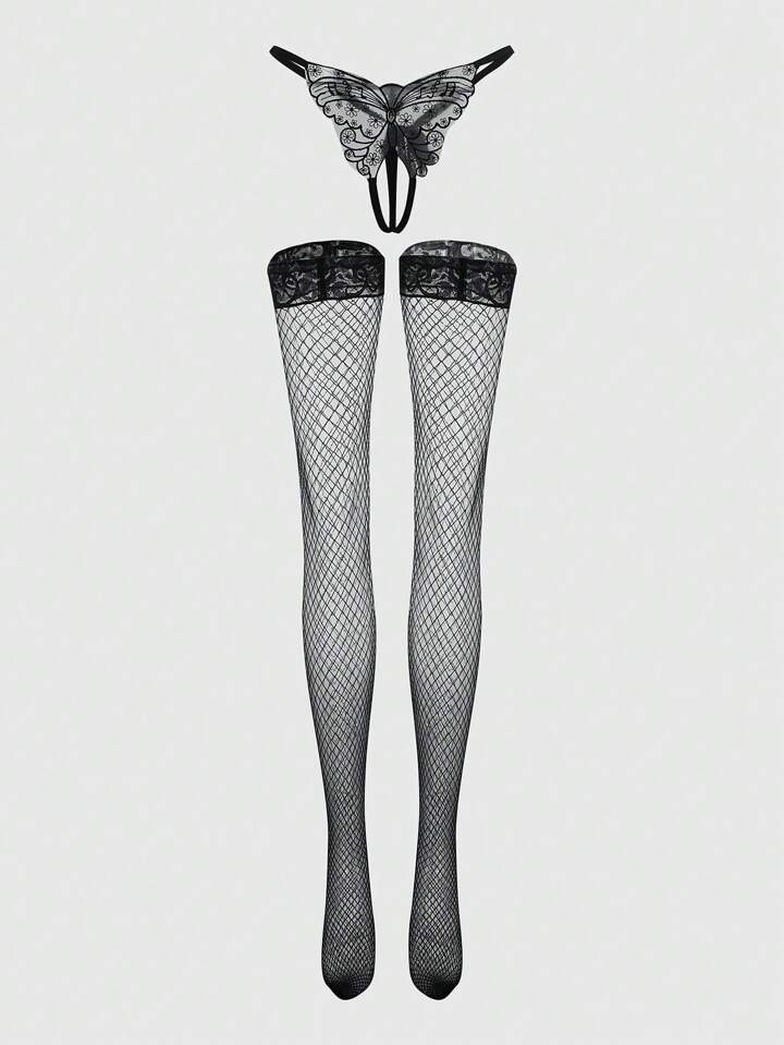 Fairycore Medias de malla con encaje floral sin entrepierna