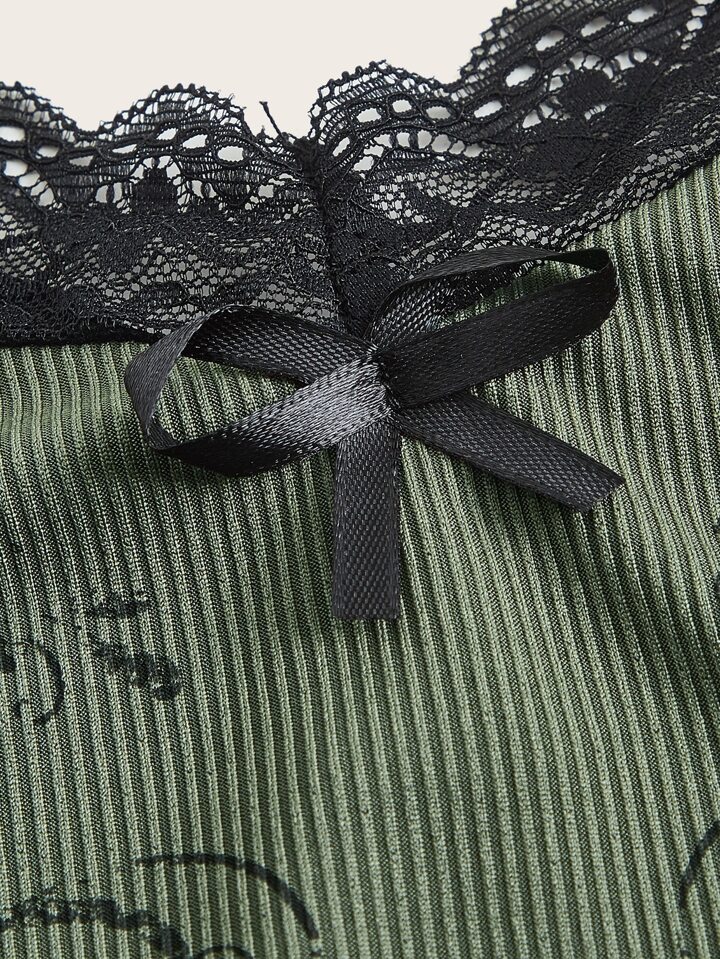 Fairycore Top de tirantes con estampado de dibujo con encaje en contraste