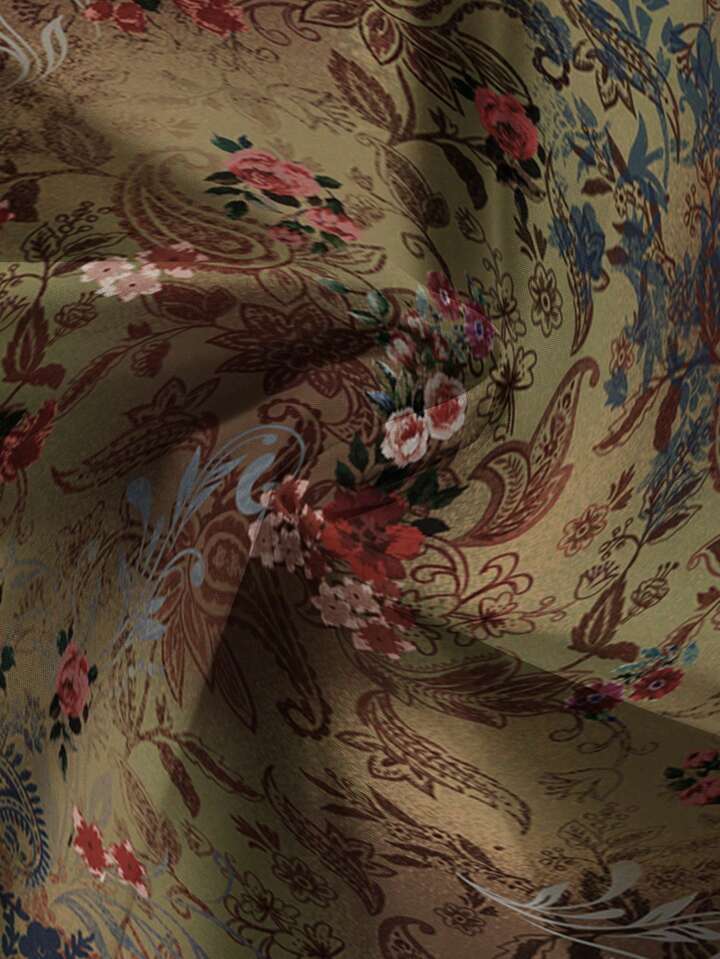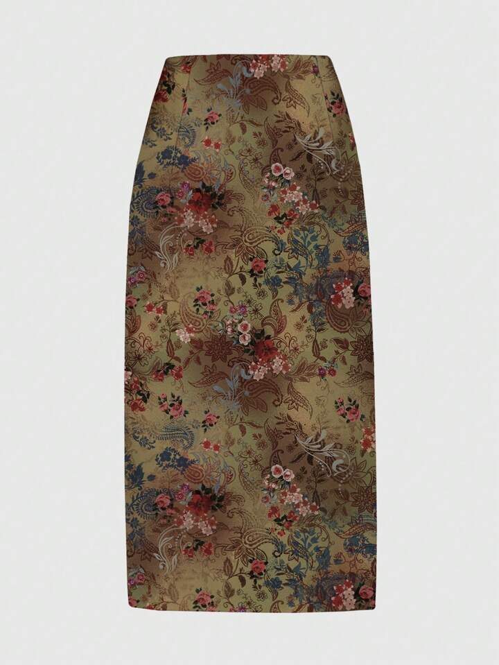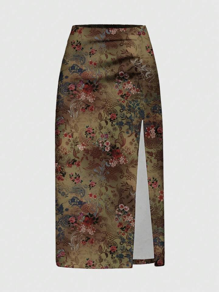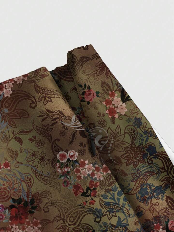 Fairycore Falda con abertura alta fruncida con estampado de paisley, flor de anacardo, estilo hippie y bohemio para mujeres