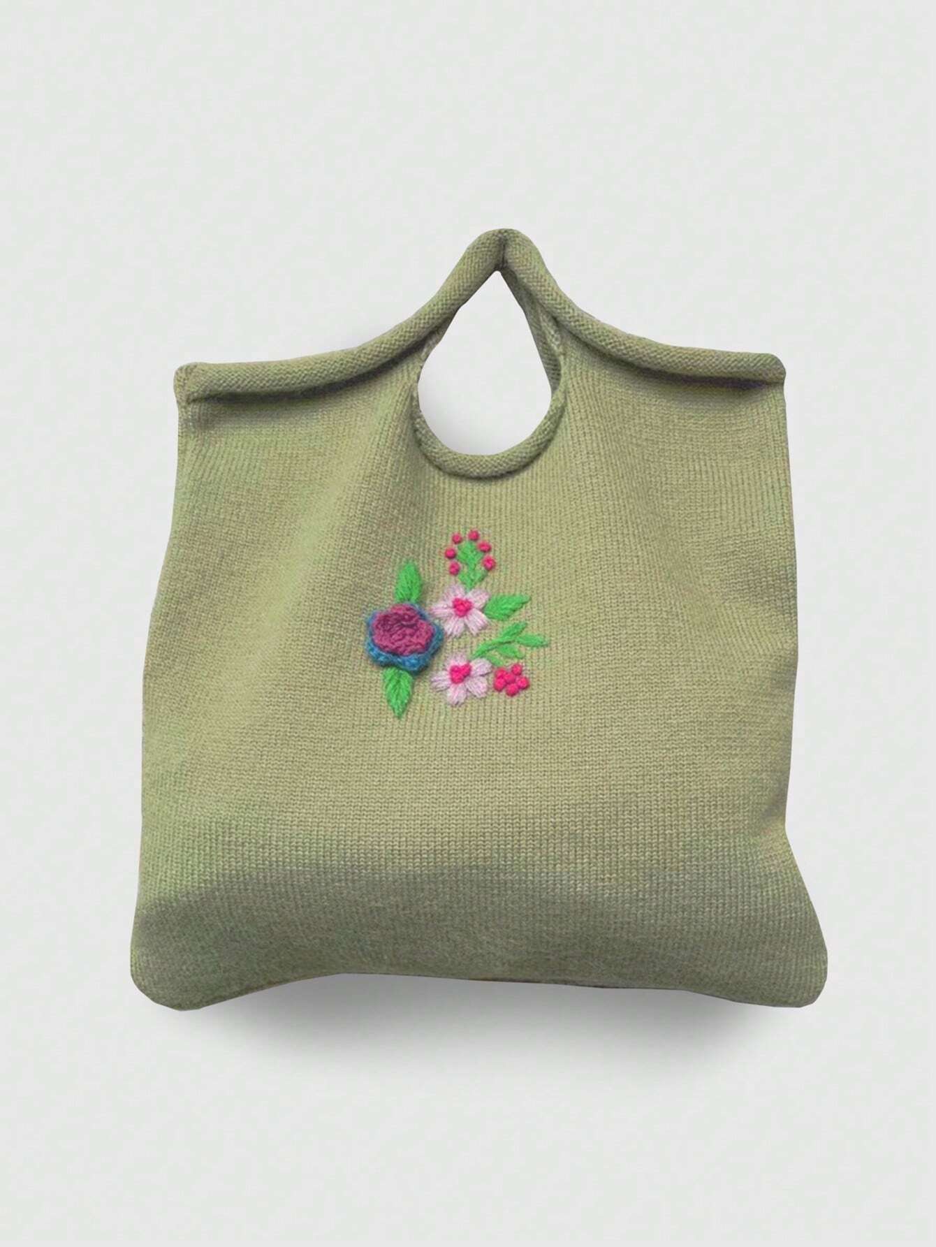 Fairycore Bolso De Punto De Flores Color-block De Moda Para Mujeres