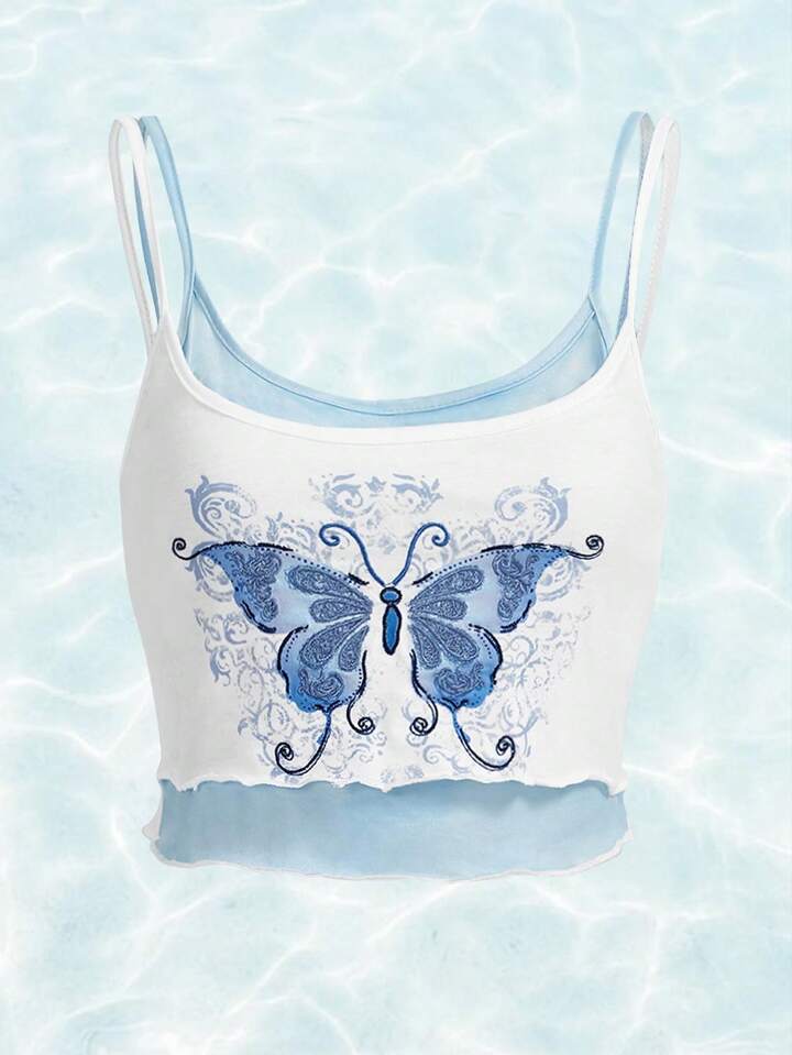 Fairycore Sirena Top de tirantes con estampado de mariposa 2 en 1
