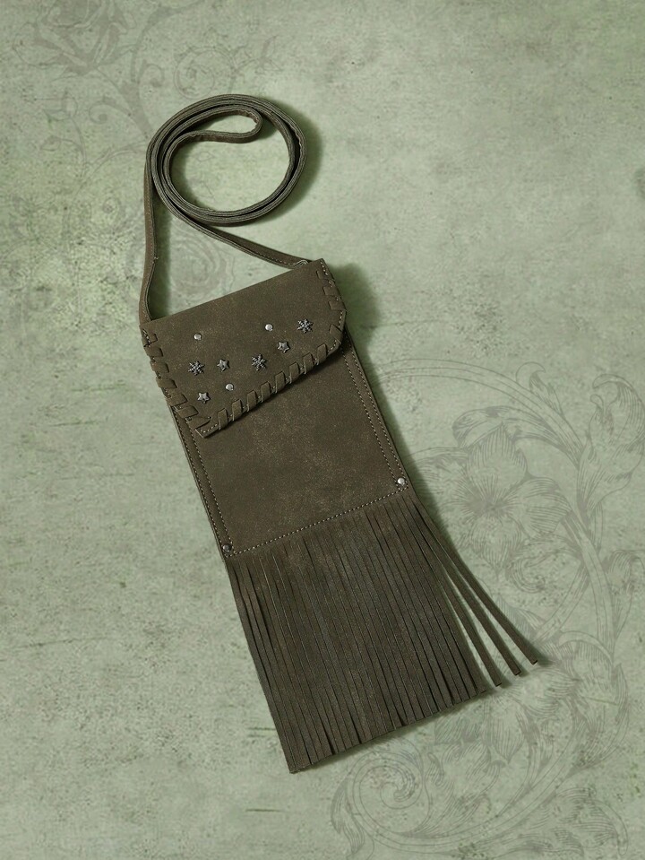 Fairycore Bolsa cuadrada mini moda con fleco con diseño de estrella para laboral