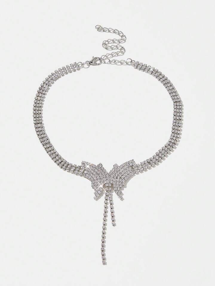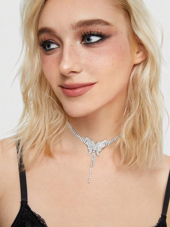 Fairycore Collar de varios niveles con cristal, perla y lazo, diseño de moda, cadena de clavícula, accesorio personalizado para mujeres