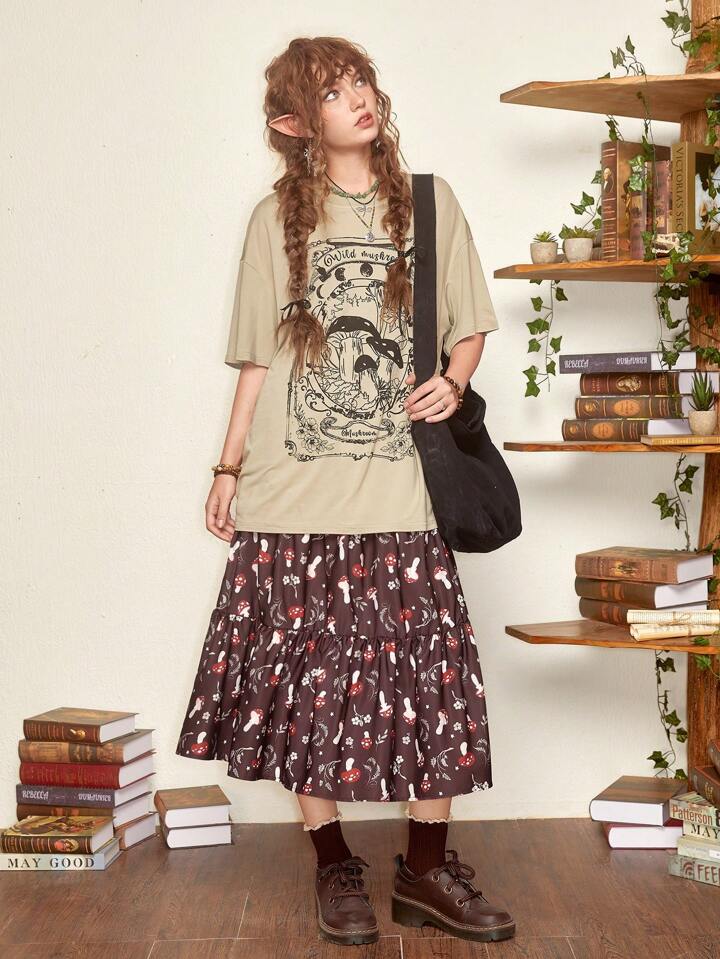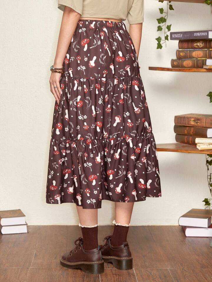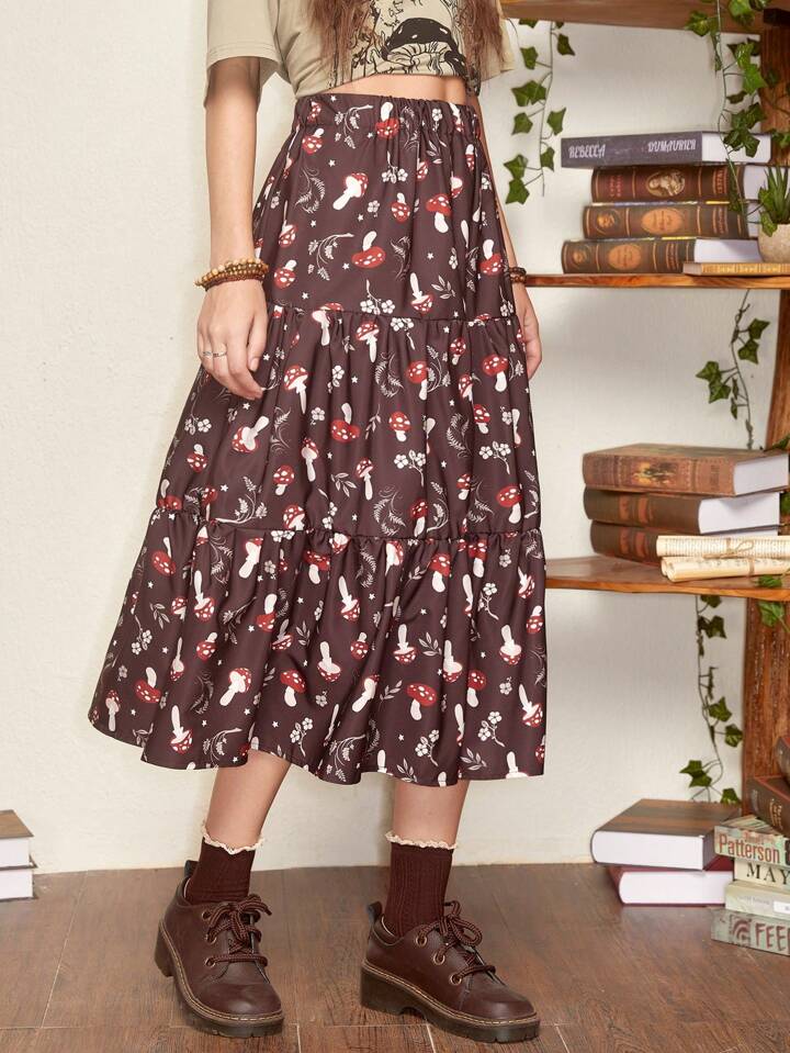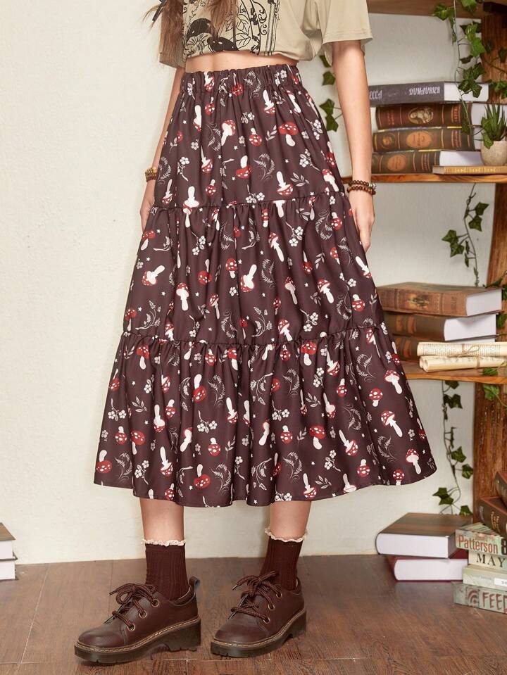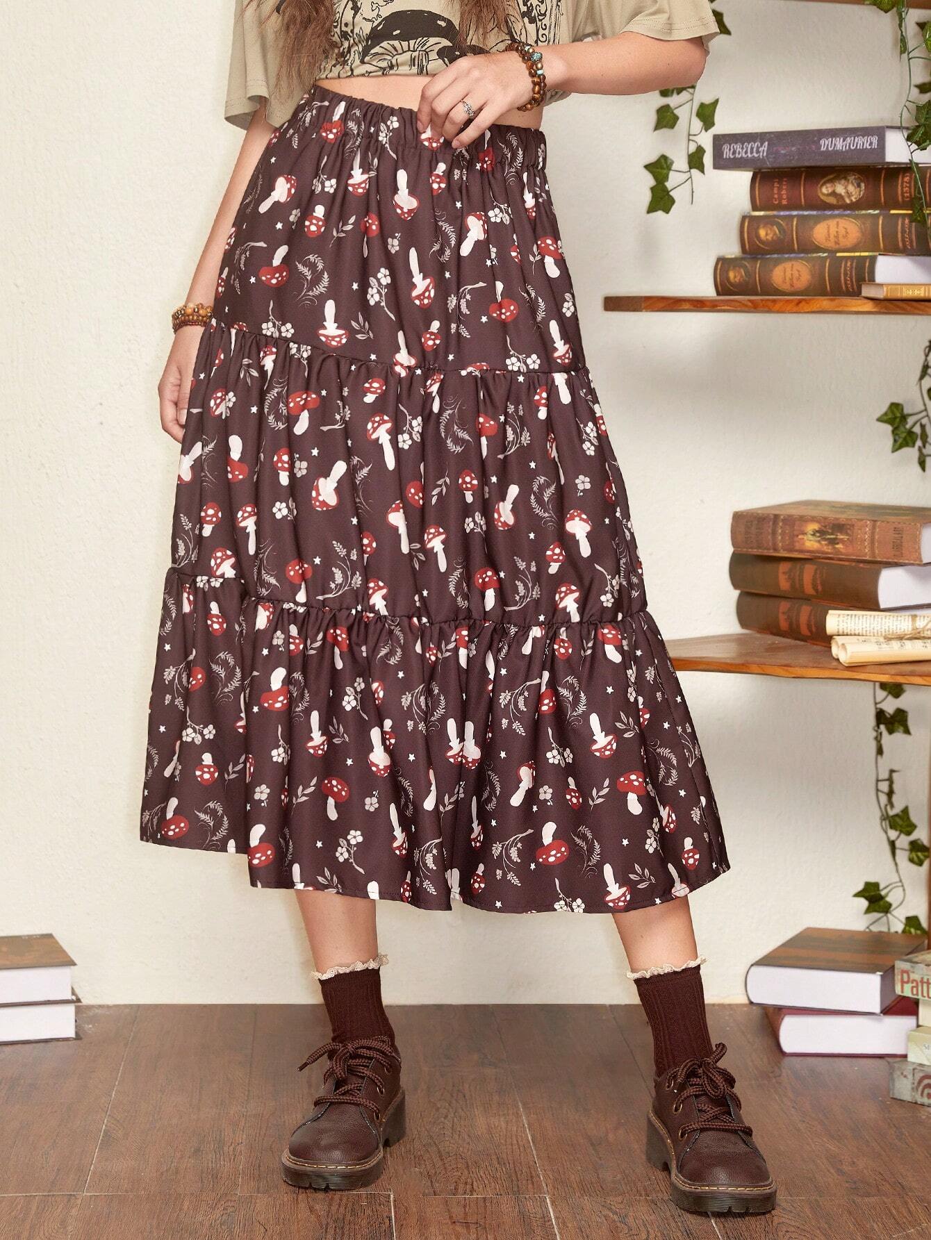 Fairycore Falda seta con estampado bajo con fruncido