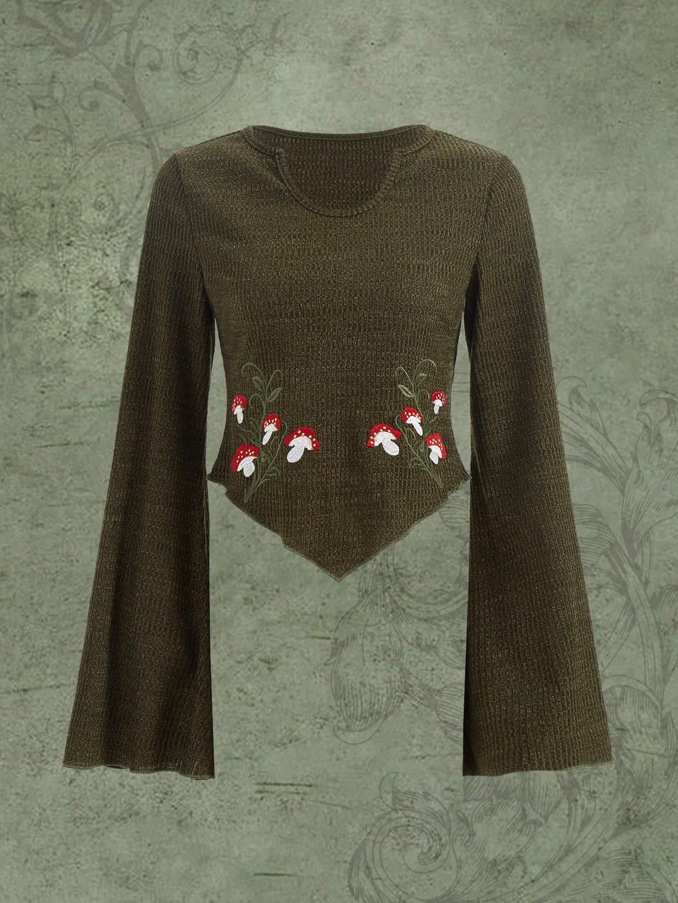Fairycore Camiseta con bordado de seta bajo hanky