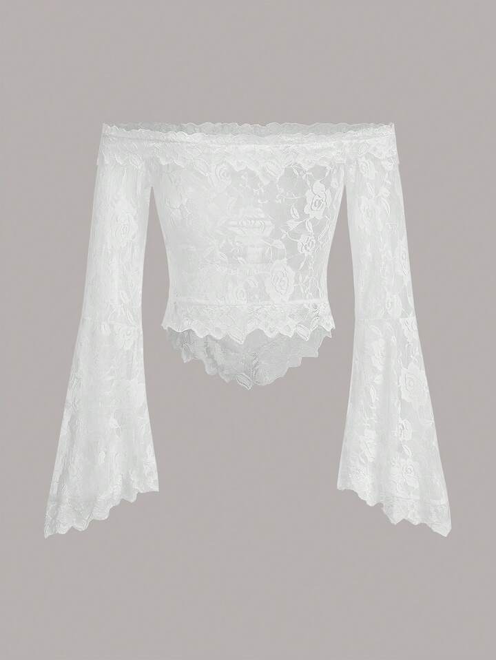 Fairycore Top de hombros descubiertos manga de campana con encaje