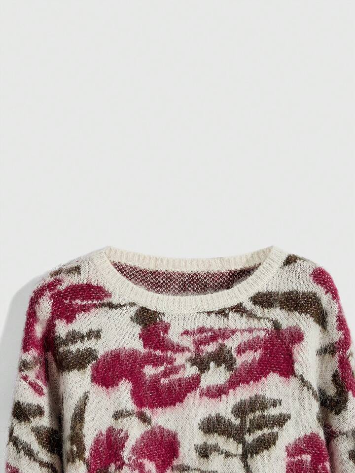 Fairycore Suéter de cuello redondo de manga larga con estampado floral jacquard oversize para mujer