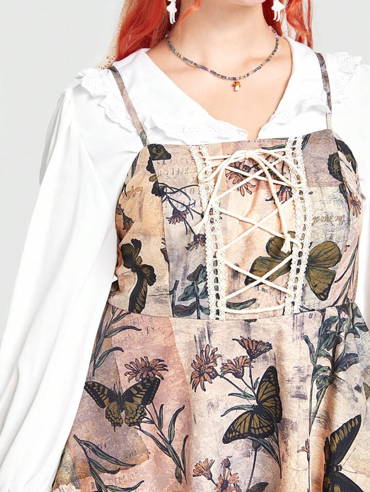 Fairycore Talla grande Vestido con estampado floral con mariposa bajo asimétrico