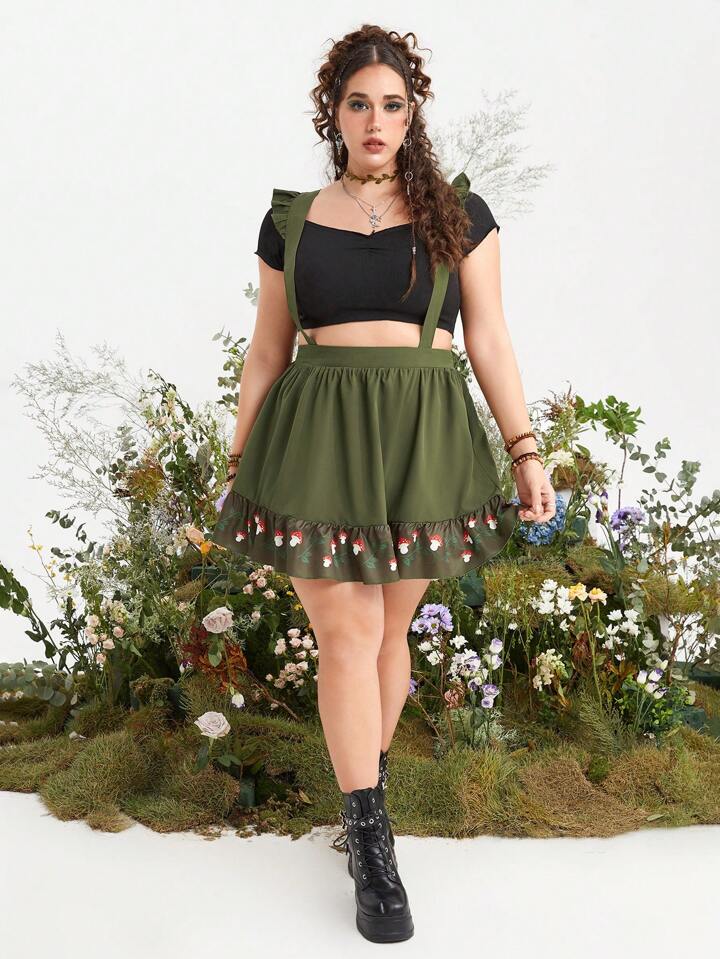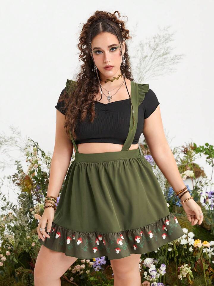 Fairycore Talla grande Falda pichi con estampado de seta ribete con fruncido sin top