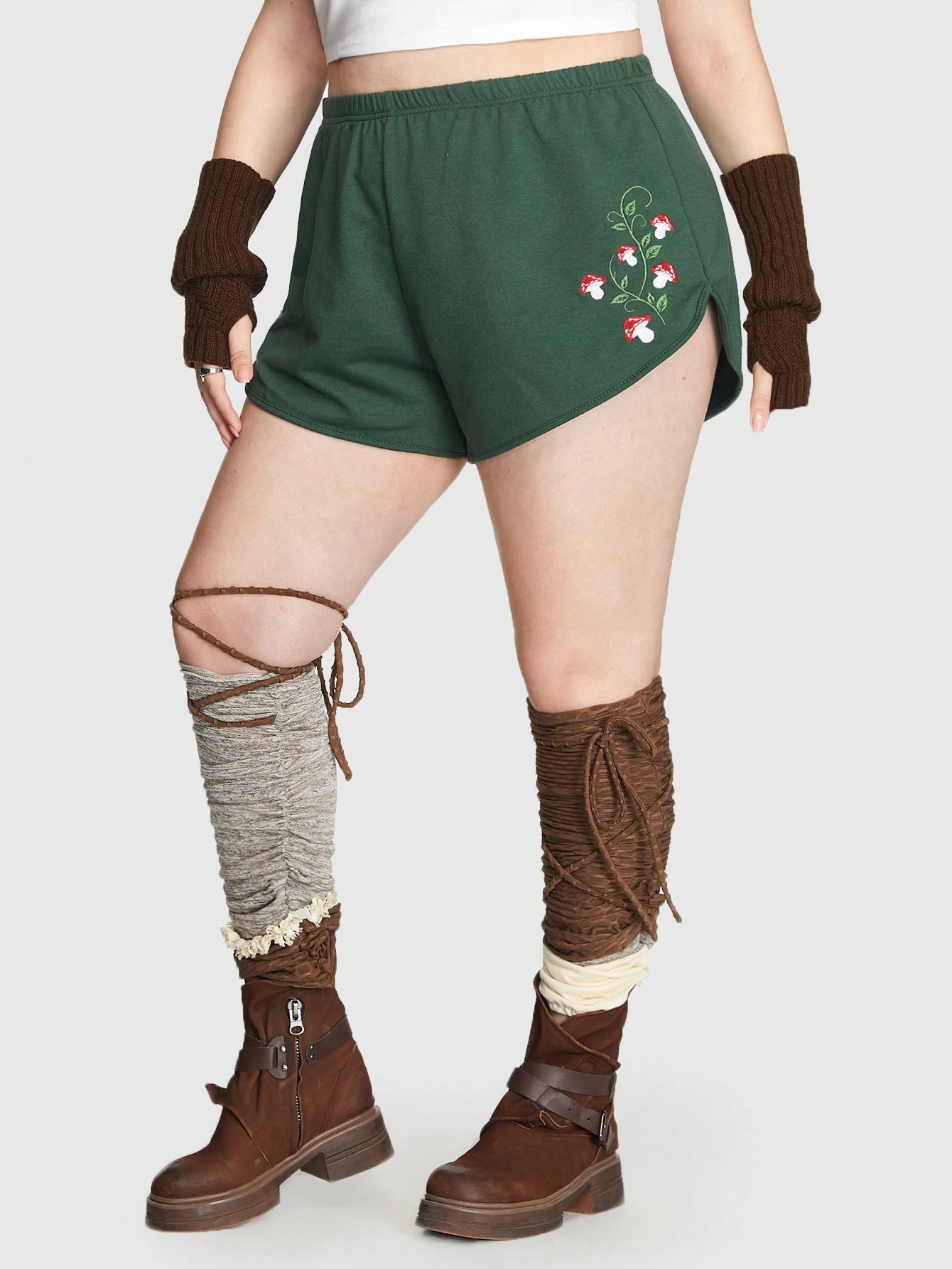 Fairycore Talla grande Shorts deportivos con estampado de seta