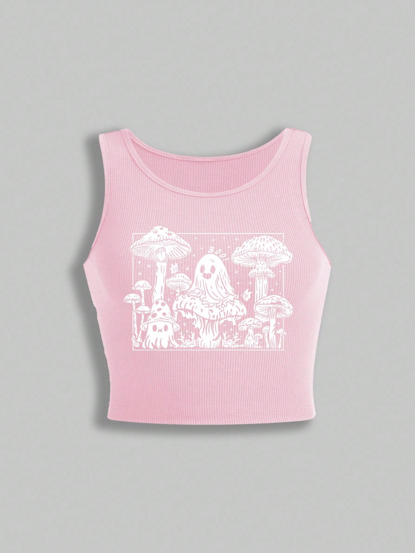 Fairycore Camiseta sin mangas ajustada de talla grande con estampado de hada y seta