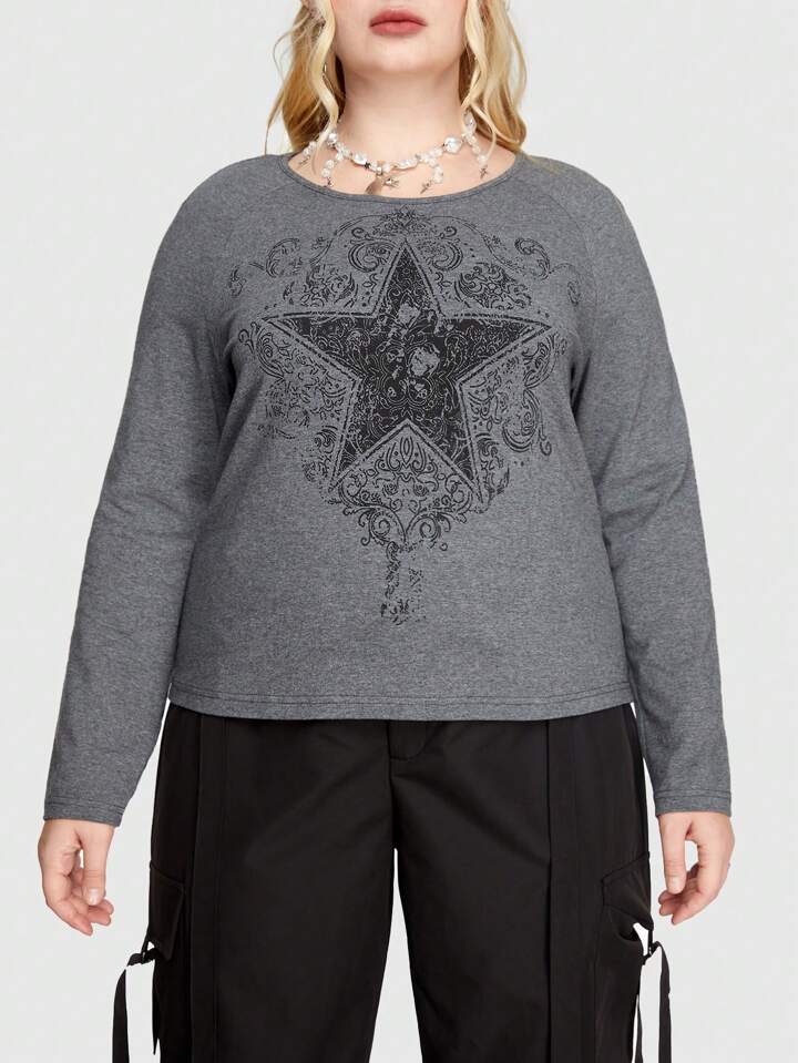 Fairycore Camiseta De Cuello Redondo Y Patrón De Estrella De Talla Grande
