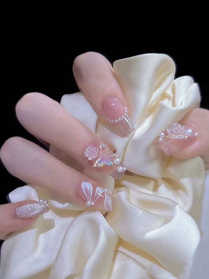 Fairycore prensa Adhesivo falso Puntas de uñas