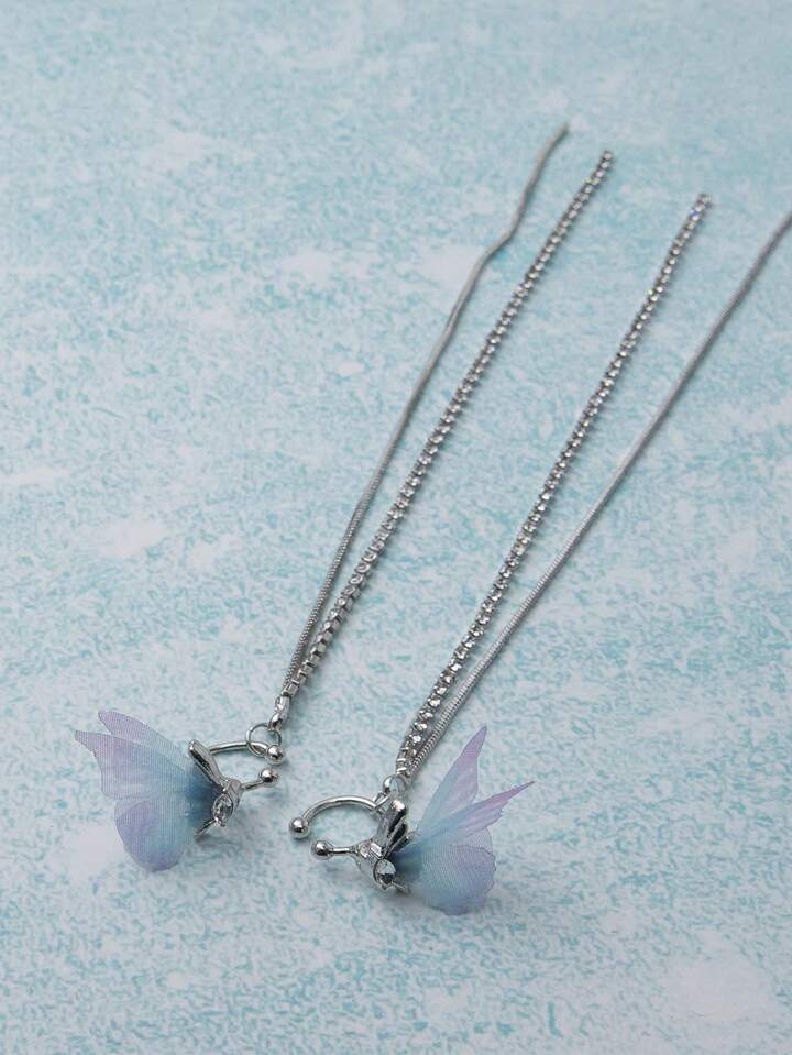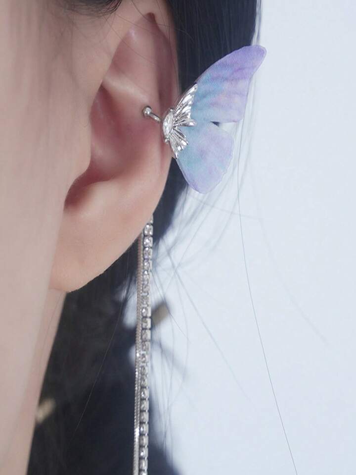 Fairycore Cuff de oreja con diamante de imitación con diseño de mariposa
