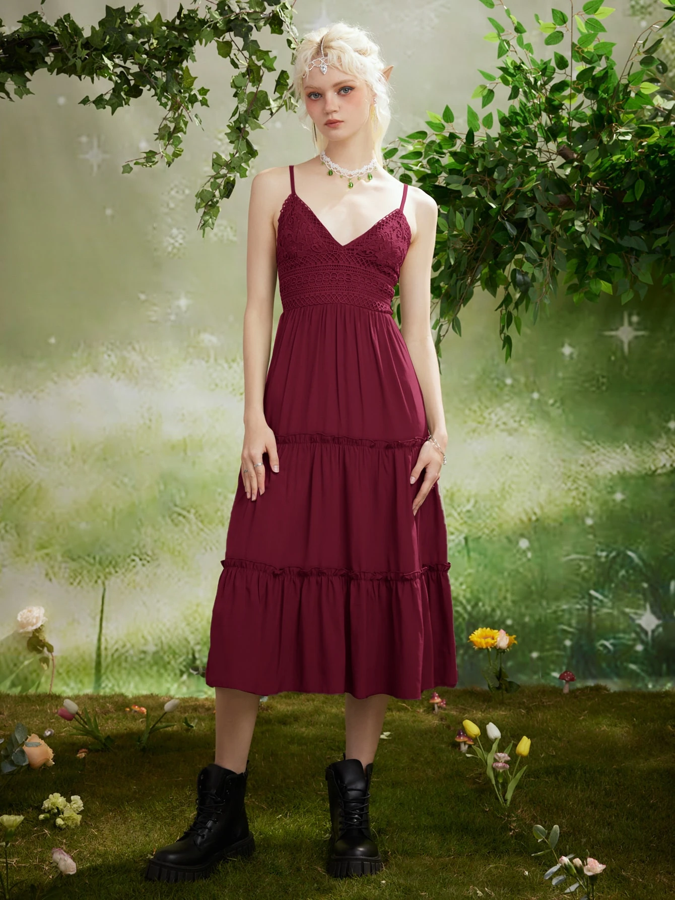 Fairycore Vestido de tirantes unicolor bajo a capas