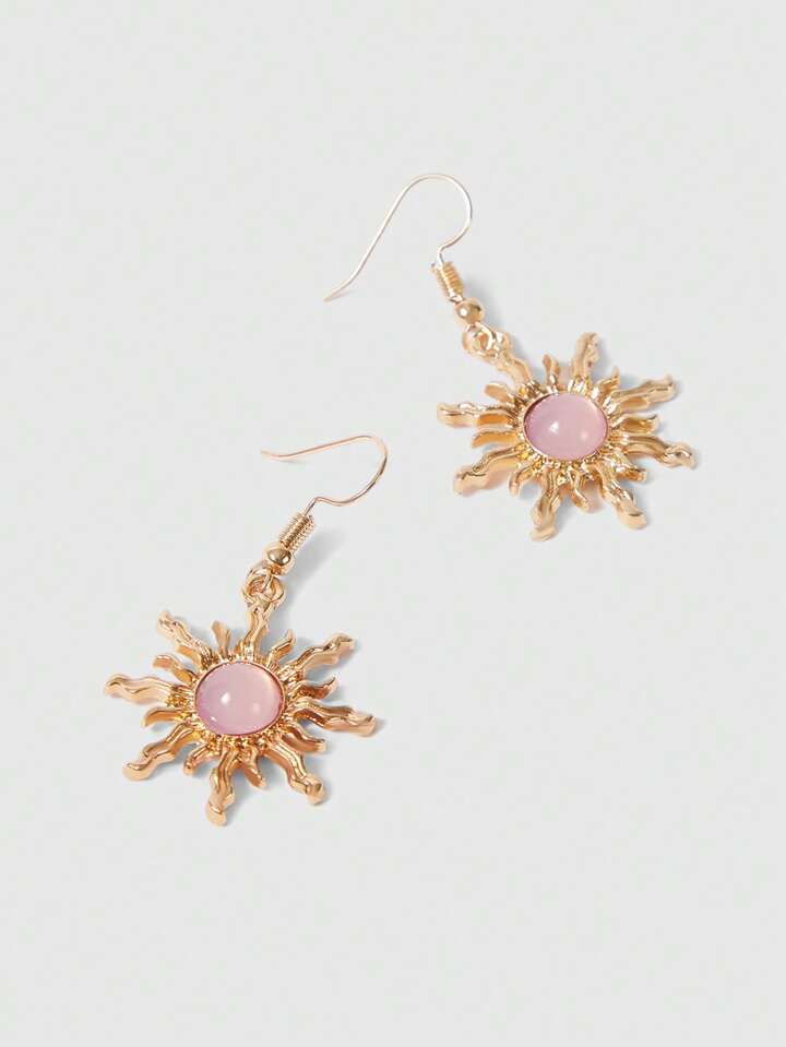 Fairycore Elegantes pendientes con forma de sol en dorado y verde