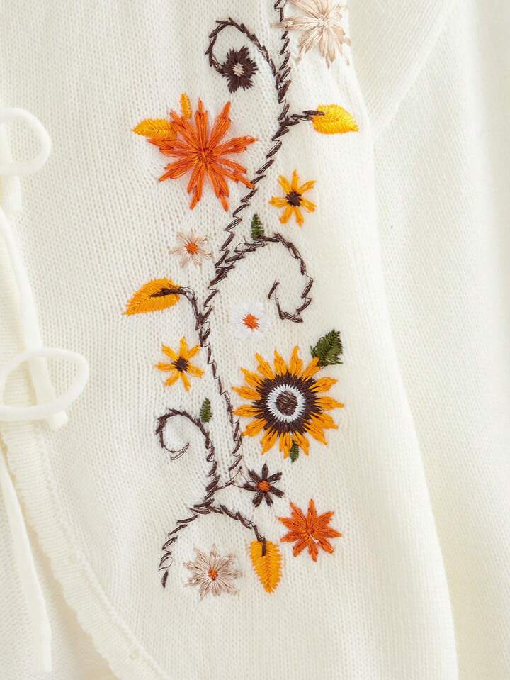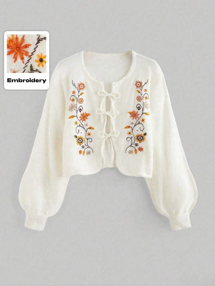 Fairycore Chaqueta de punto tipo cárdigan con mangas abullonadas y bordado botánico vintage para mujer