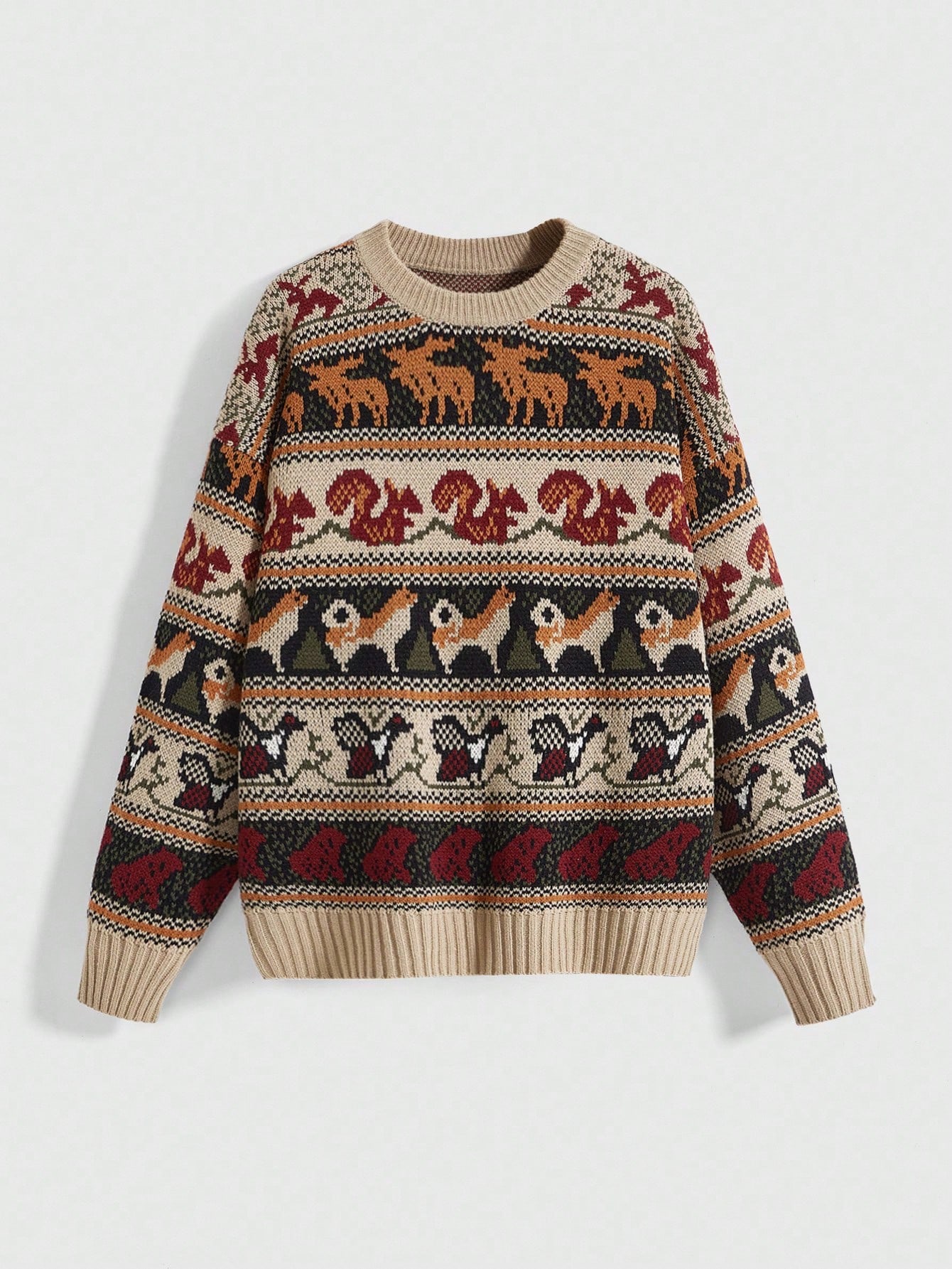 Fairycore Suéter de manga larga con cuello redondo y estampado total de estilo vintage Mori