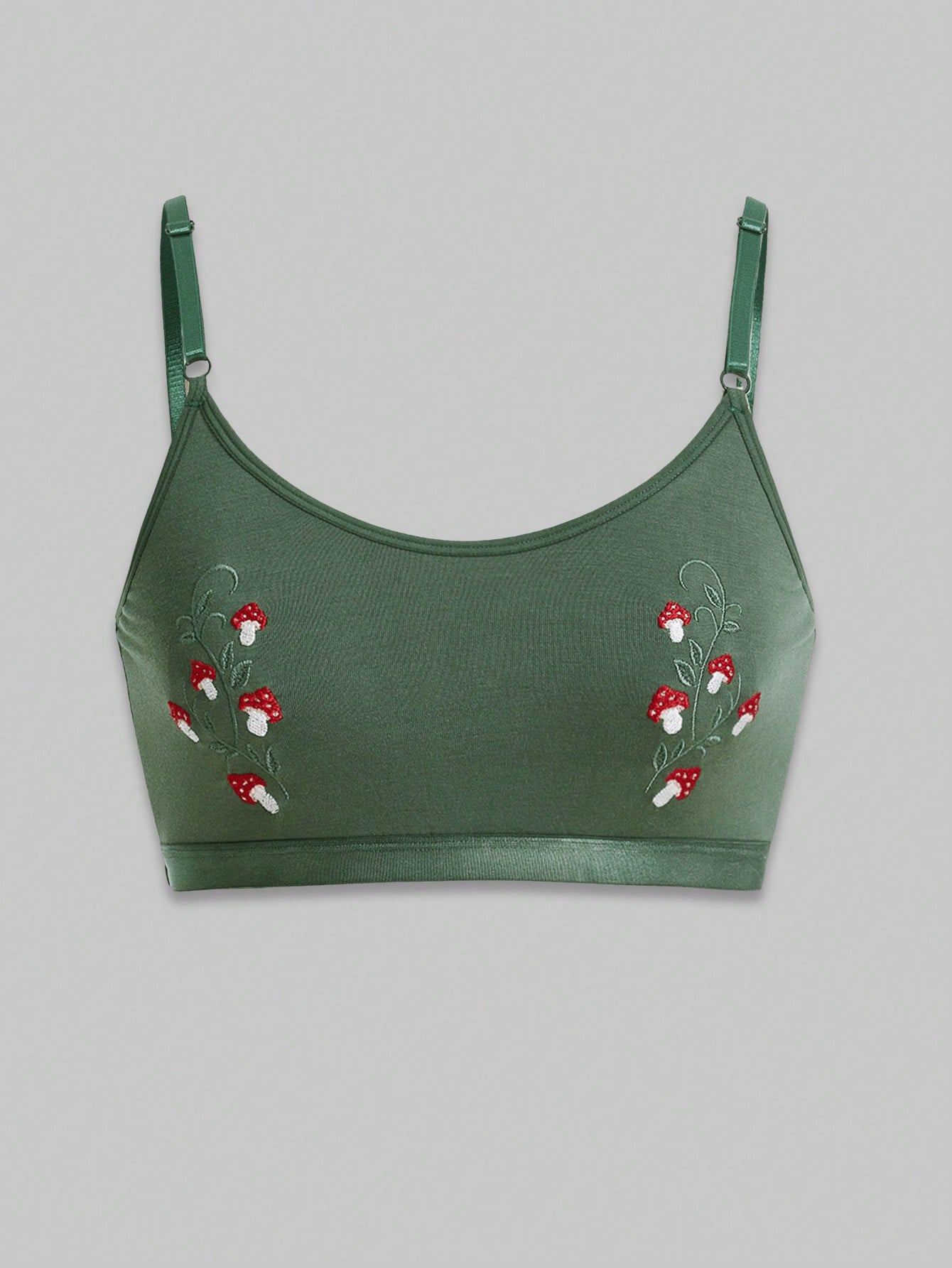 Fairycore Sujetador De Hongos Y Vid Bordado Sin Alambre