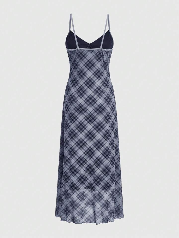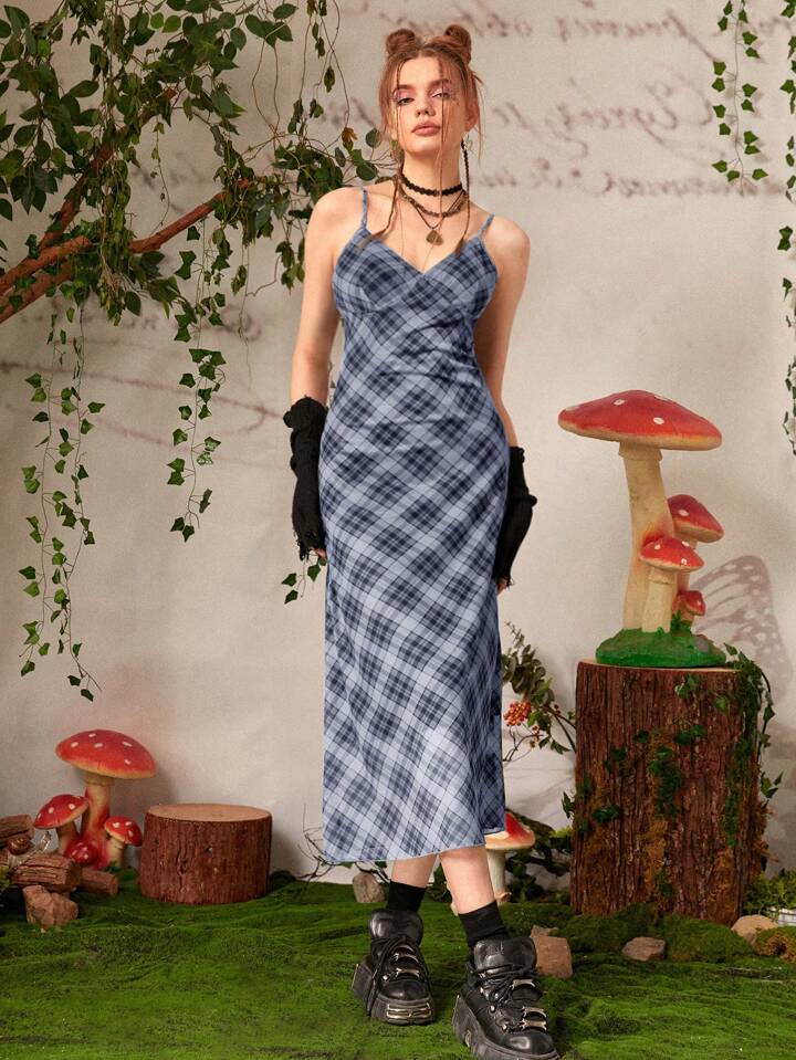 Fairycore Vestido largo informal de mujer con estampado de cuadros