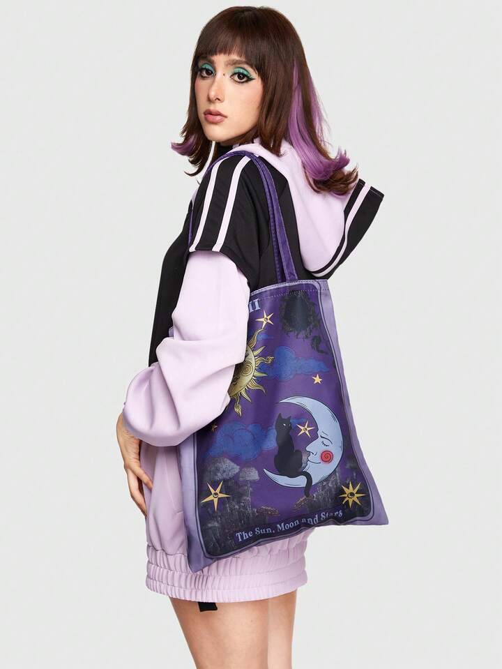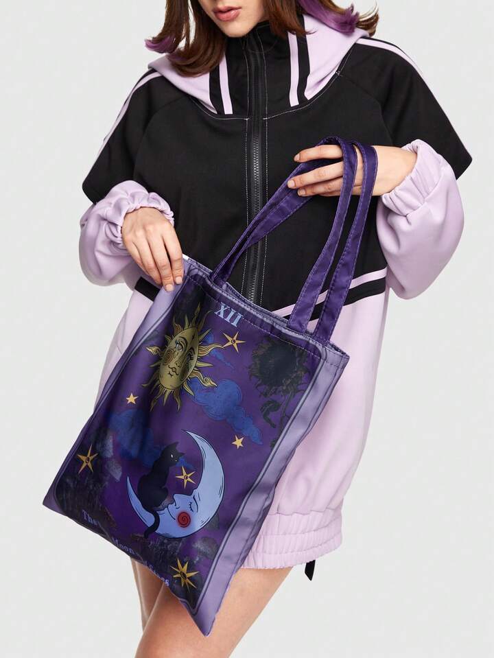 Fairycore Bolso De Mujer Con Estampado Lunar Y Gato Negro Versátil Y De Moda
