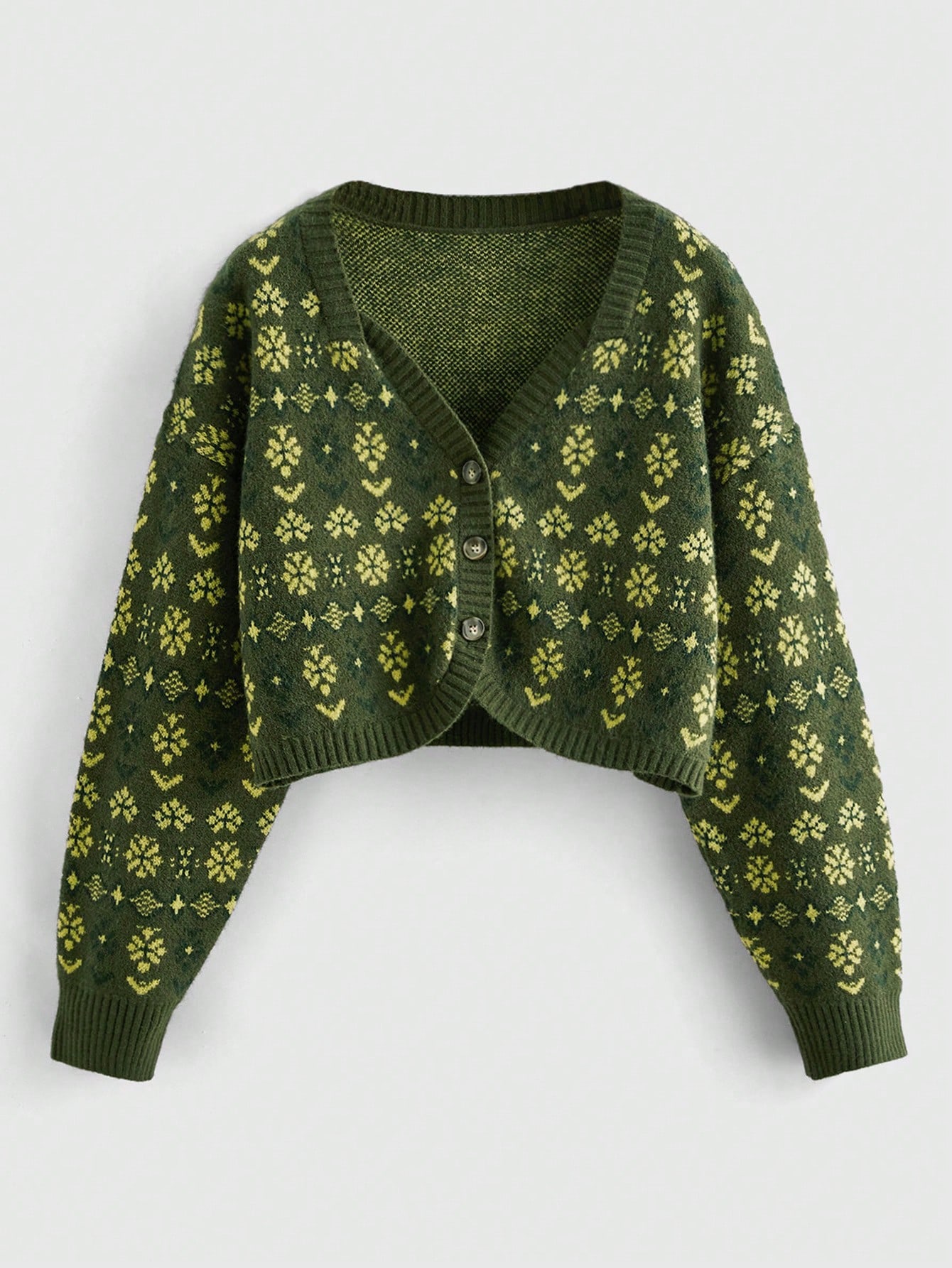 Fairycore Cárdigan Completo Con Botones Y Cuello Con Estampado Para Mujeres