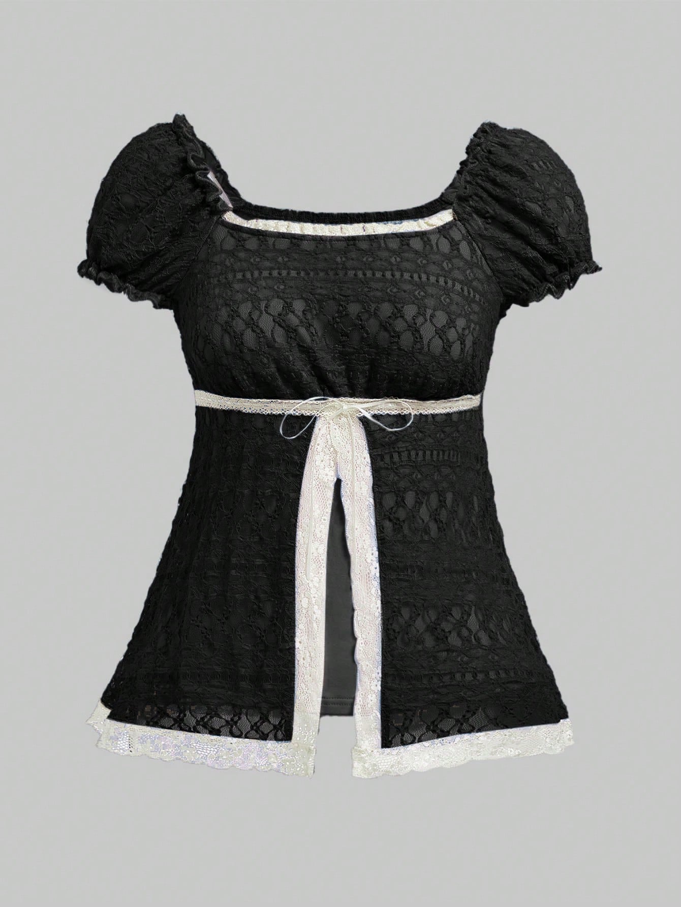 Fairycore Camiseta de mujer dulce con dobladillo partido 2 en 1
