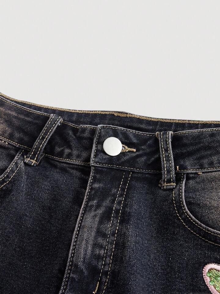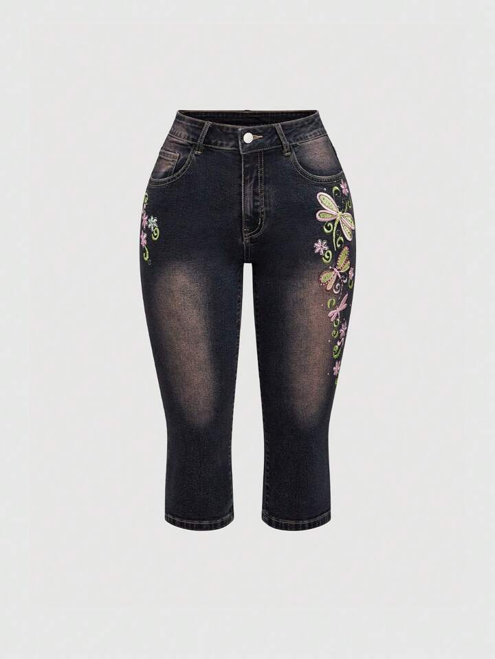 Fairycore Pantalones capri vaqueros de mujer con bordado de lentejuelas de mariposa en estilo retro Y2K de verano
