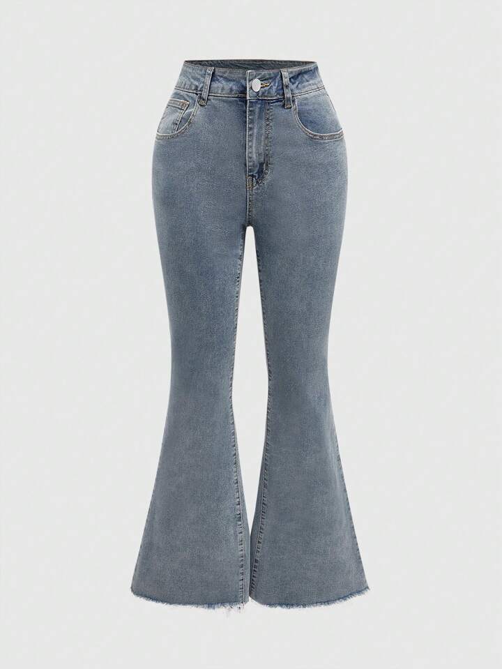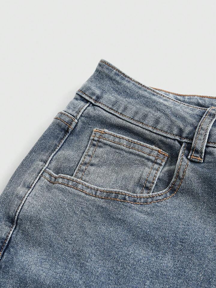 Fairycore Jeans acampanados con bordado de perlas con mariposa para mujer