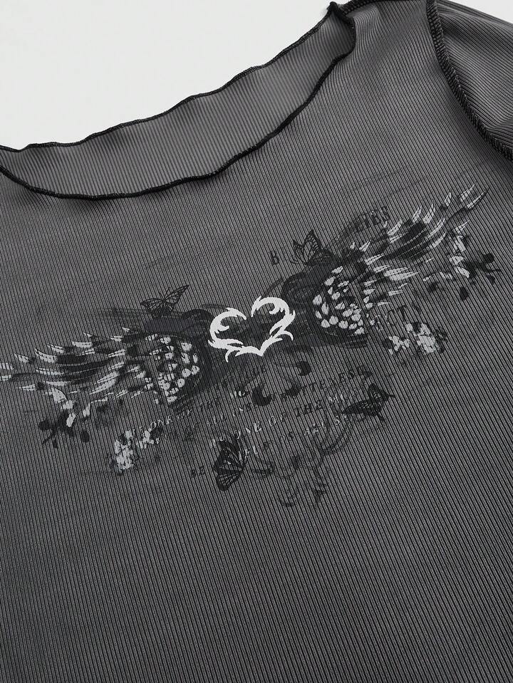 Fairycore Camiseta De Mujer Con Mariposa E Impresión De Eslogan Y Costuras De Contraste