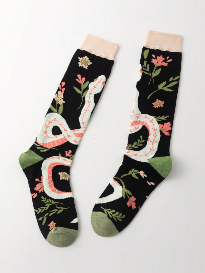 Fairycore Calcetines hasta la mitad de la pantorrilla con estampado de dibujos animados para mujeres, adecuados para Año Nuevo y uso diario