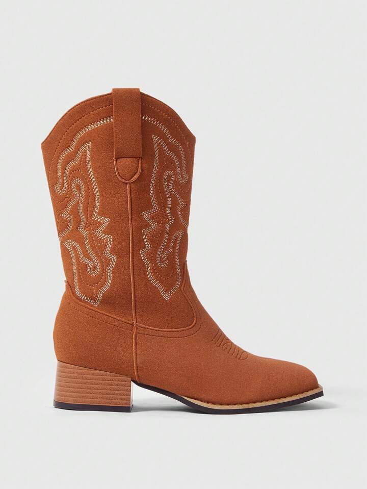 Fairycore Botas vaqueras para mujer, detalles de moda para exteriores con remaches, bordados y slip-on en botines, botas vaqueras occidentales, para otoño/primavera