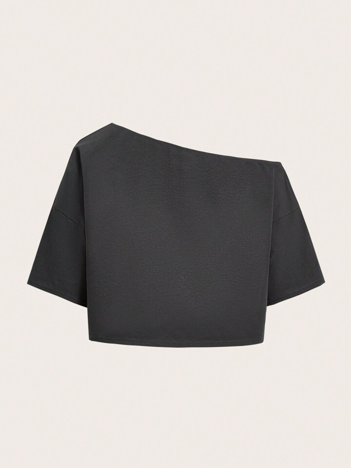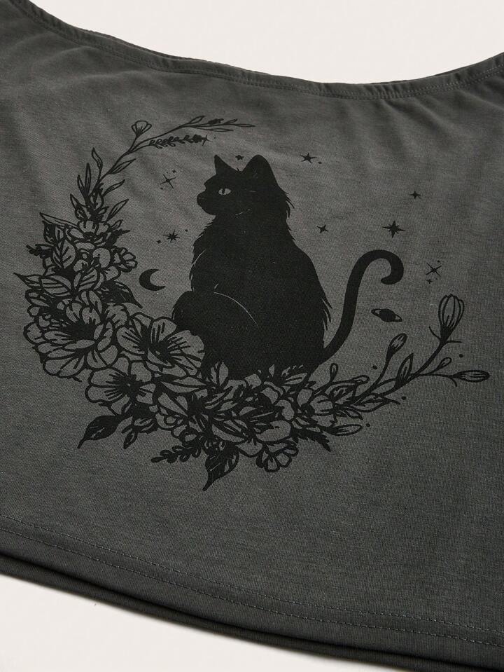 Fairycore Camiseta Con Escote Asimétrico Y Estampado Floral De Gato Para Mujer